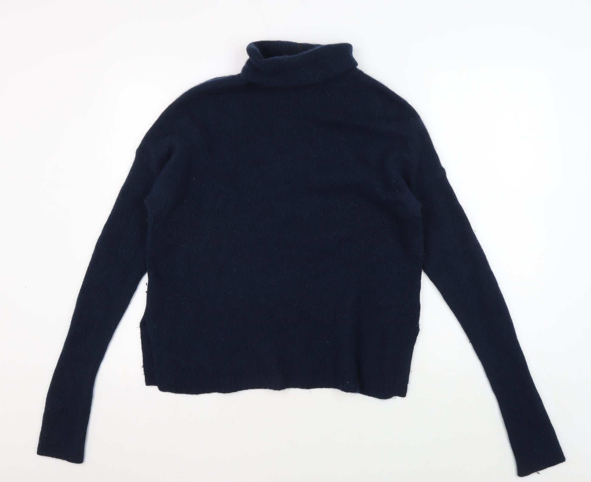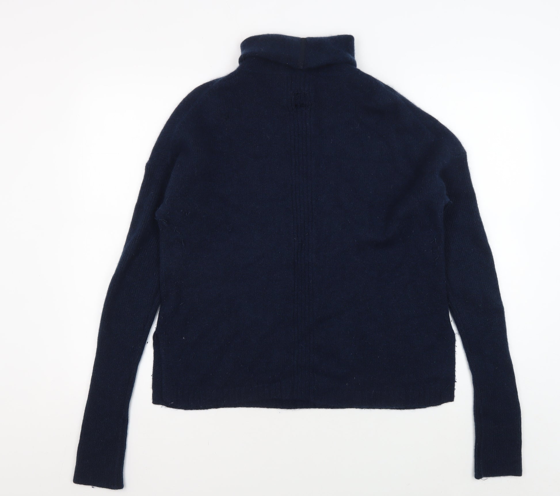 Elevate your wardrobe with this luxurious Jigsaw roll neck jumper, crafted from 100% cashmere. Designed for women, the jumper is a sophisticated deep blue, perfect for adding a touch of elegance to your autumn and winter outfits. The roll neck provides warmth and style, complementing the long sleeves to keep you cosy during the colder months. This jumper, made from high-quality cashmere, ensures a soft touch against your skin while maintaining its classic appeal. The simple yet versatile design allows for various styling options, making it a staple piece for any cold-weather occasion. Despite a small hole present, this jumper holds its charm and offers a unique opportunity to own a piece from Jigsaw, a brand renowned for its premium materials. Pair it with your favourite trousers or a chic skirt for a smart-casual look. Grab this opportunity to add a classic blue roll neck jumper to your collection.