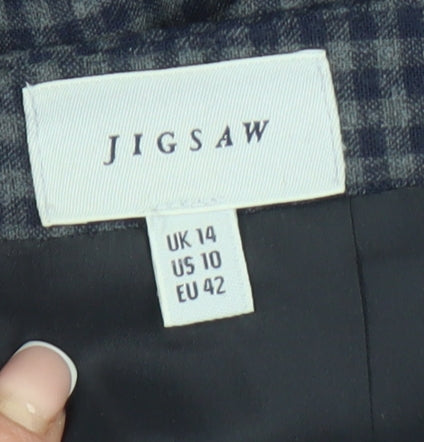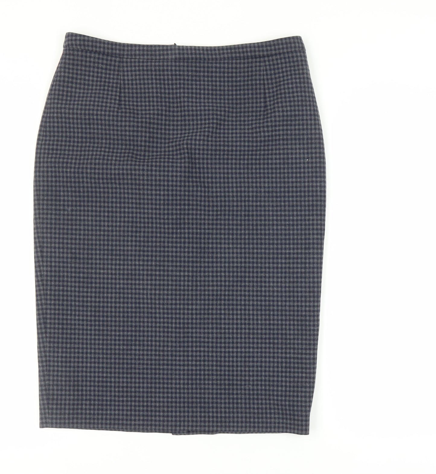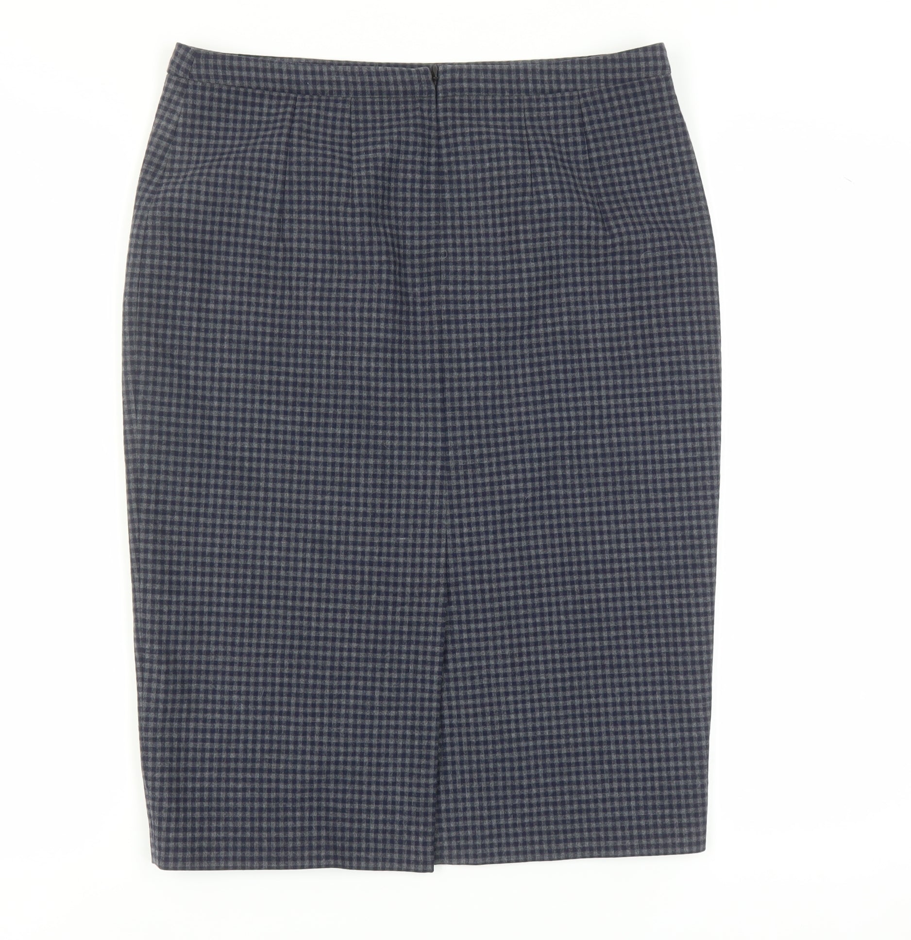 Step into sophistication with this Jigsaw Women's Pencil Skirt in an elegant blue check pattern. Designed for the refined professional, this knee-length skirt offers a timeless straight and pencil style, making it the perfect piece for any workwear wardrobe. The skirt is expertly crafted from a high-quality blend of materials including 54% Polyester, 44% Viscose, and 2% Elastane, ensuring comfort and durability. Its tailored fit flatters the figure, while the secure zip closure at the back provides ease of wear. Ideal for business and formal settings, this skirt pairs effortlessly with blouses, shirts, or knitwear, whether you're headed to the office or attending a business meeting. The mid-rise fit accentuates your waistline, adding a flattering touch to your ensemble. Suitable for autumn, spring, and winter seasons, it's a versatile piece that transitions seamlessly across your wardrobe. Despite showing slight signs of wear, the skirt remains in excellent condition, ready to accompany you on numerous stylish occasions. Update your wardrobe with this sophisticated piece and enjoy the blend of style and comfort it offers.
