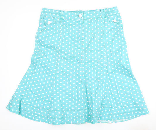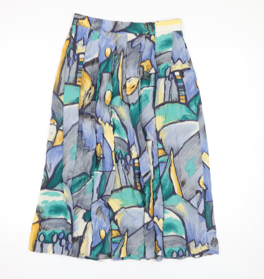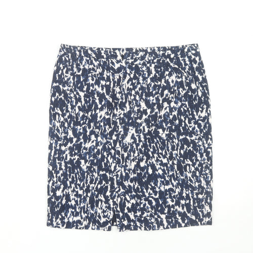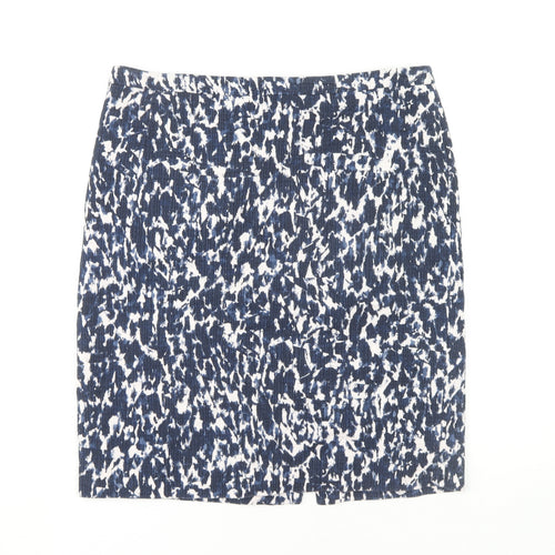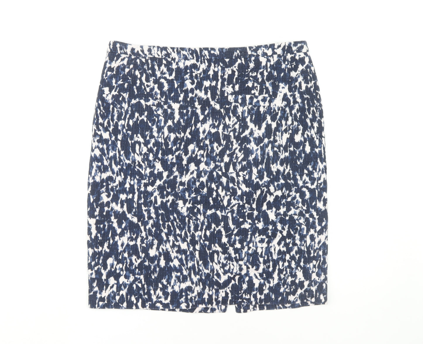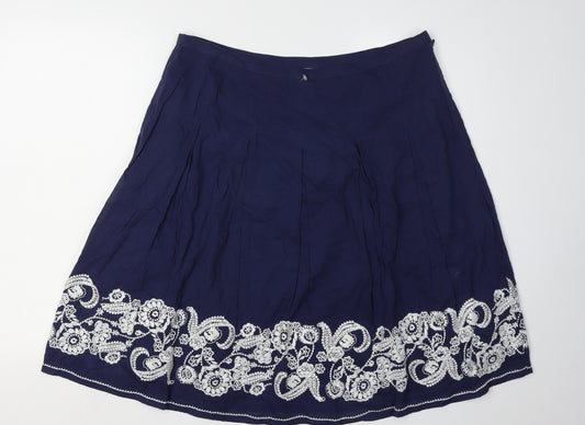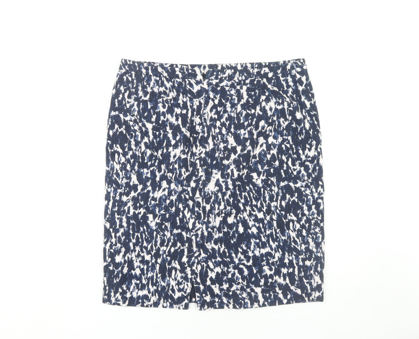 Women's Blue Geometric Knee Length Skirt, Size 14