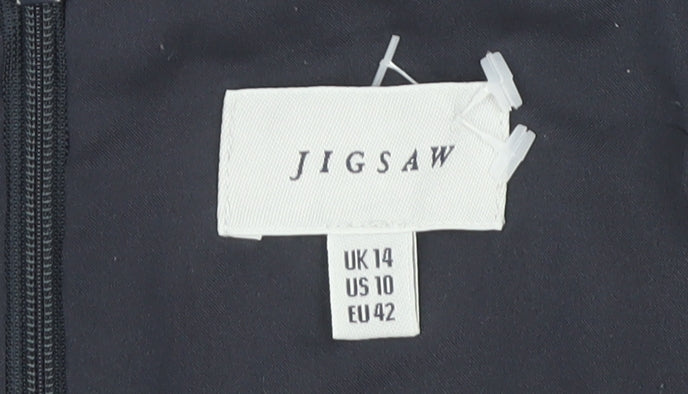 Discover the sophisticated elegance of this Jigsaw women's skirt in a stunning blue shade, perfect for both casual and workwear occasions. Crafted with a unique geometric pattern, this knee-length pencil skirt exudes timeless style and grace. It's expertly tailored to provide a flattering fit, accentuating your figure with its straight and pencil silhouette. Made from high-quality cotton with a hint of elastane, this skirt offers both comfort and a slight stretch, allowing you to move with ease. The mid-rise design ensures a classic and comfortable fit, while the zip closure adds a practical touch. Wear it for a stylish day at the office or a leisurely weekend outing. Pair this versatile skirt with a crisp white blouse for an effortlessly chic look. A must-have addition to your wardrobe for the spring and summer seasons.