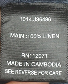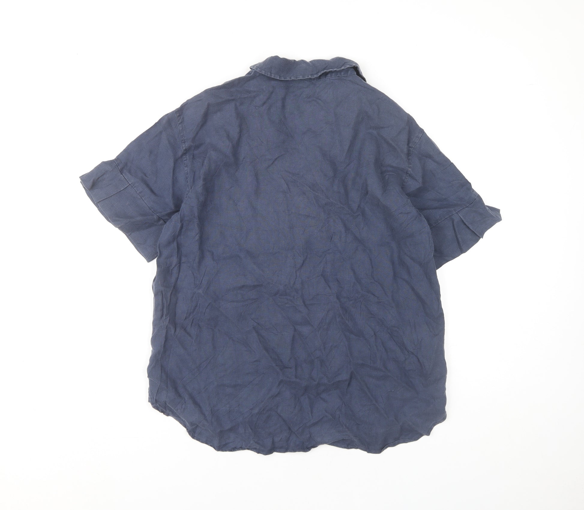 Women's Blue Linen Collared Short Sleeve Blouse UK 12