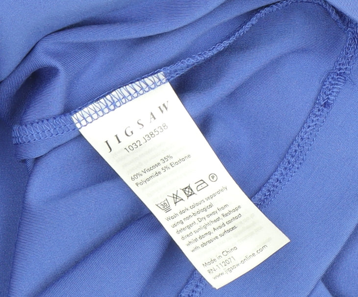 Elevate your style with this elegant Jigsaw women's sheath dress in a striking blue hue. Perfect for both formal and casual occasions, this dress features a slimming fit and is crafted from a jersey fabric blend of viscose, polyamide, and elastane, ensuring comfort and elegance. Designed for the modern woman, it showcases a flattering boat neck and sophisticated half sleeves that add a touch of class to any ensemble. The dress is perfect for spring and summer seasons, making it a versatile addition to your wardrobe. Its pullover closure offers ease of wear while maintaining a seamless silhouette. Though in excellent condition, it shows light wear with no original tags attached. Whether you're heading to a business meeting or a casual brunch, this dress is sure to make a statement. Machine washable for easy garment care, it's the ideal choice for those seeking both style and convenience. Stand out effortlessly with this Jigsaw dress, designed to complement your unique style.