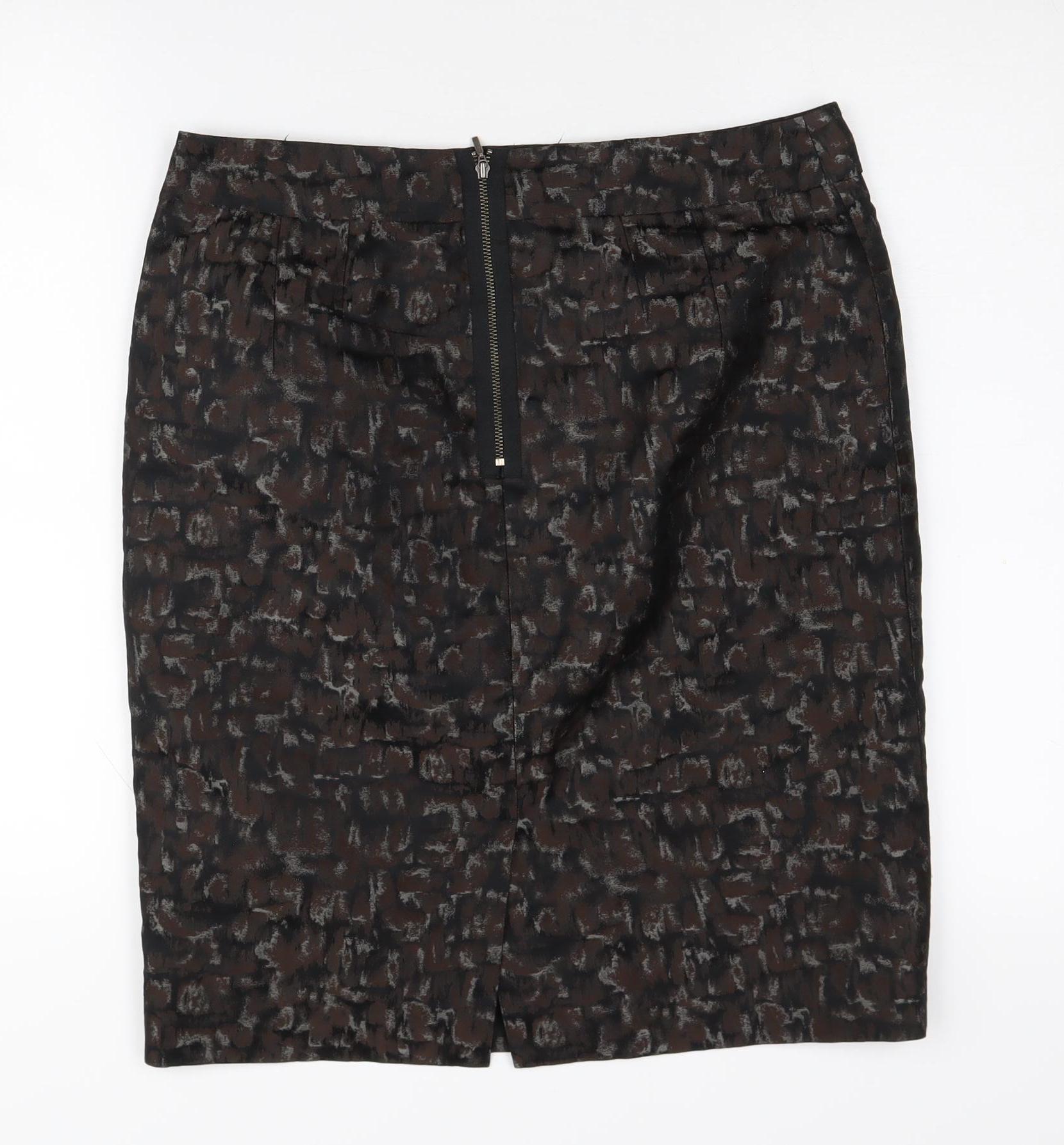 Jigsaw Women Brown Cotton Knee Length Pencil Skirt Size 12