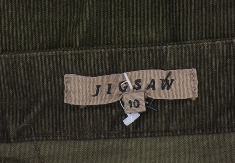 Elevate your autumn and winter wardrobe with this exquisite Jigsaw Women's Green Corduroy Pencil Skirt in size 10. Crafted from a luxurious blend of 98% cotton and 2% elastane, this knee-length skirt offers both comfort and style. The rich green hue and classic straight pencil silhouette make it a versatile choice for any casual occasion. The durable corduroy fabric not only adds texture but also ensures long-lasting wear. Featuring a convenient zip closure, the skirt is easy to wear and style. Perfect for women who appreciate timeless fashion, this skirt seamlessly blends elegance with practicality. Ideal for pairing with your favourite jumpers or blouses, it is a must-have addition to your seasonal collection. Don't miss the chance to own this stunning piece from Jigsaw.