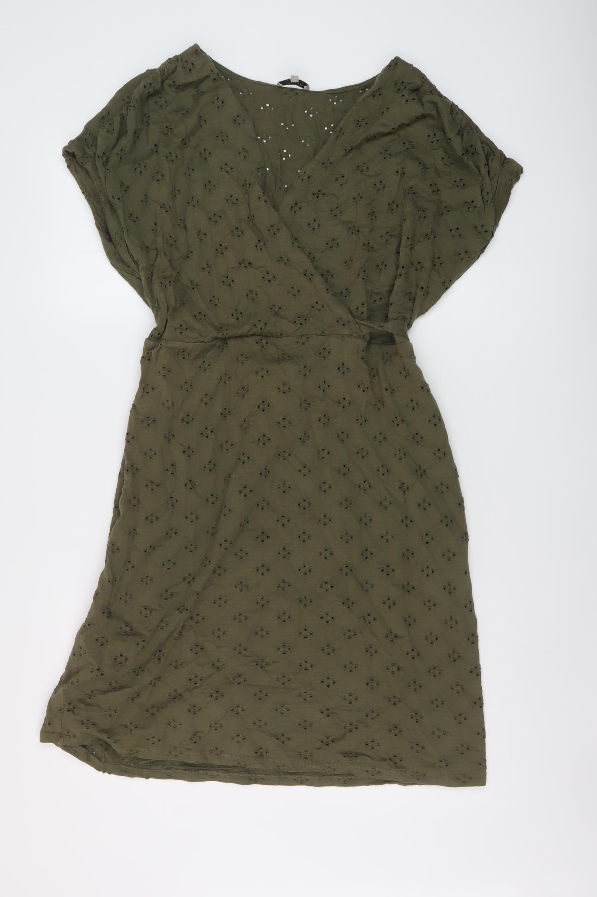 Womens Green Cotton Trapeze & Swing Size L V-Neck Pullover