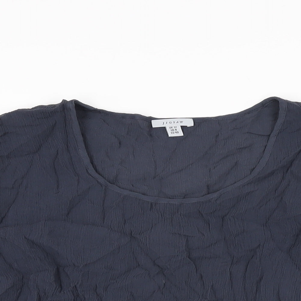 Womens Grey Silk Basic T-Shirt Size 12 Scoop Neck