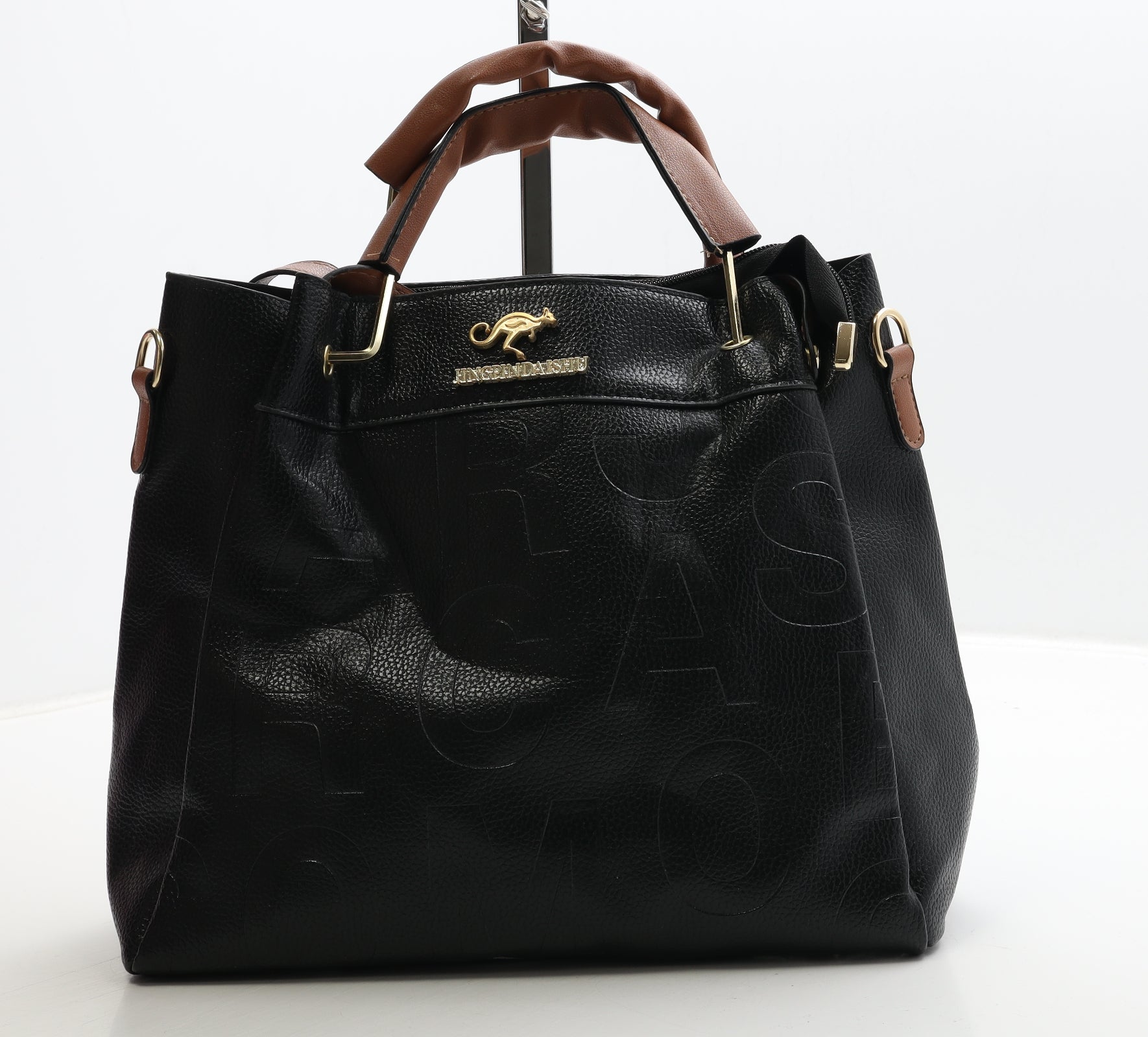 Womens Black Logo Polyester Top Handle Bag Size Medium