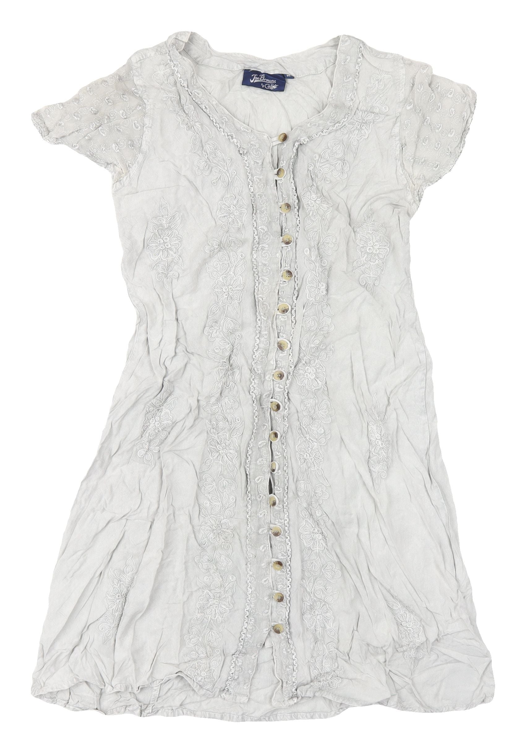 Embrace a casual yet chic style with this Joe Browns ivory shift dress, designed for the fashion-forward woman who values comfort and sophistication. Made from 100% viscose, this dress offers an incredibly soft and lightweight feel, perfect for keeping you cool and relaxed throughout the day. The embroidered accents provide a touch of elegance, while the scoop neckline and button closure add classic detailing to the overall design. The flutter sleeves give a playful and feminine vibe, making it an ideal choice for casual outings or laid-back gatherings. With its short sleeves and versatile ivory hue, this dress is a wardrobe staple that can effortlessly transition from one season to another. Pair it with your favourite sandals or boots to create a look that is uniquely yours. Experience the quality and style that Joe Browns is renowned for while enjoying the ease of care with a simple hand wash. Elevate your everyday wardrobe with this timeless piece and make a statement wherever you go.