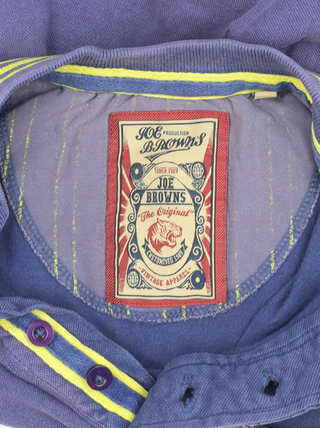 Elevate your casual wardrobe with this distinctive Joe Browns men's polo shirt, designed in a striking purple hue. Crafted for maximum comfort, this polo shirt features a collared neckline and short sleeves, making it an ideal choice for warmer months or layering under jackets. The regular fit ensures comfort, while the solid pattern and jersey fabric provide a soft, breathable feel. Accented with a vintage-inspired embroidered logo, this shirt adds a touch of retro flair to any outfit. Whether you're heading to a casual outing or a relaxed gathering, this polo serves as a versatile and stylish piece. Hidden button closures enhance the classic look and make it easy to style. With its vibrant colour and standout design, this polo is perfect for adding a pop of colour to your autumn or spring wardrobe. Machine washable for ease of care, this polo shirt maintains its quality through multiple washes. Upgrade your style with this Joe Browns polo, where fashion meets comfort effortlessly.