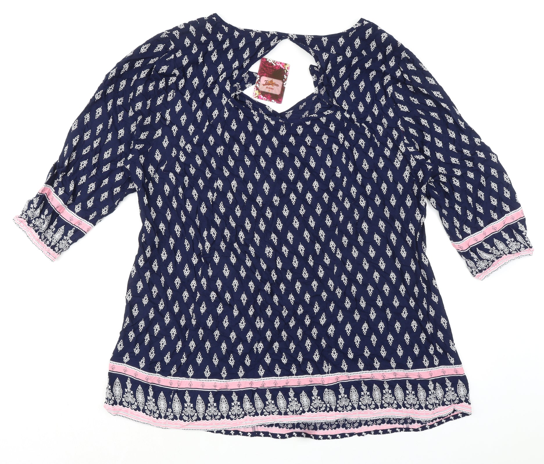 Womens Blue Geometric 100% Cotton Basic Blouse Size 22 V-Neck