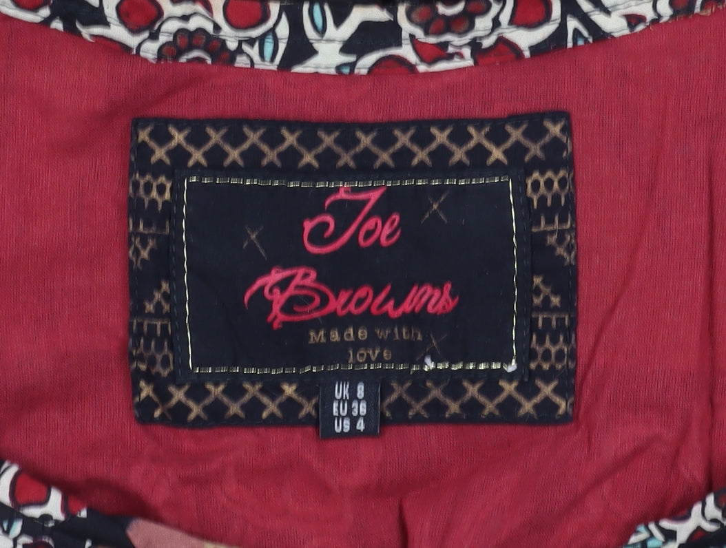 This vibrant Joe Browns dress is perfect for those looking to add a splash of colour and personality to their wardrobe. Crafted from 100% cotton, it ensures day-long comfort and breathability, making it ideal for the spring and summer months. The playful multicoloured floral print is perfectly complemented by the scoop neckline and short sleeves, presenting a cheerful, bohemian vibe. As a fit and flare style, it is both flattering and comfortable, cinching in at the waist with a charming belted feature that shapes the figure beautifully. While the knee-length design adds a touch of elegance, the button accents enhance its casual yet chic appearance. Suitable for a variety of casual occasions, this dress effortlessly embodies a fun, carefree aesthetic. Maintained in excellent condition, it boasts machine washable care to keep it looking fresh with ease. Whether you're exploring the city or enjoying a garden party, this dress is bound to make an impression.