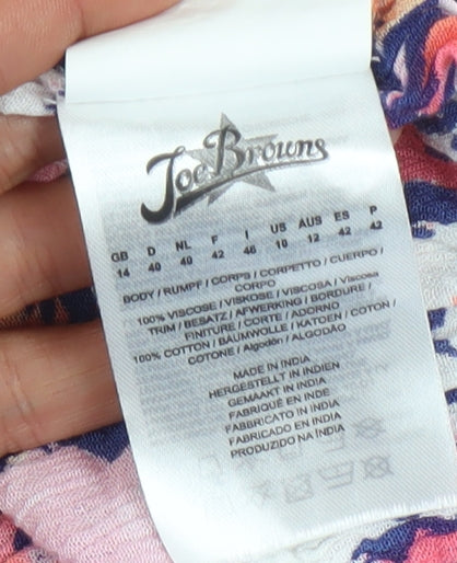 Enhance your wardrobe with this eye-catching Joe Browns multicoloured tunic blouse, perfect for spring and summer occasions. Crafted from lightweight viscose, this floral patterned blouse offers a regular fit, ensuring comfort and style. Its flutter sleeves and scoop neckline add elegance, while the ruffle accents enhance its casual, party-ready appeal. Suitable for both casual outings and cocktail gatherings, this machine washable tunic promises convenient care. A tie closure complements its relaxed design, making it a fashionable choice for women who appreciate colourful, floral-themed apparel.