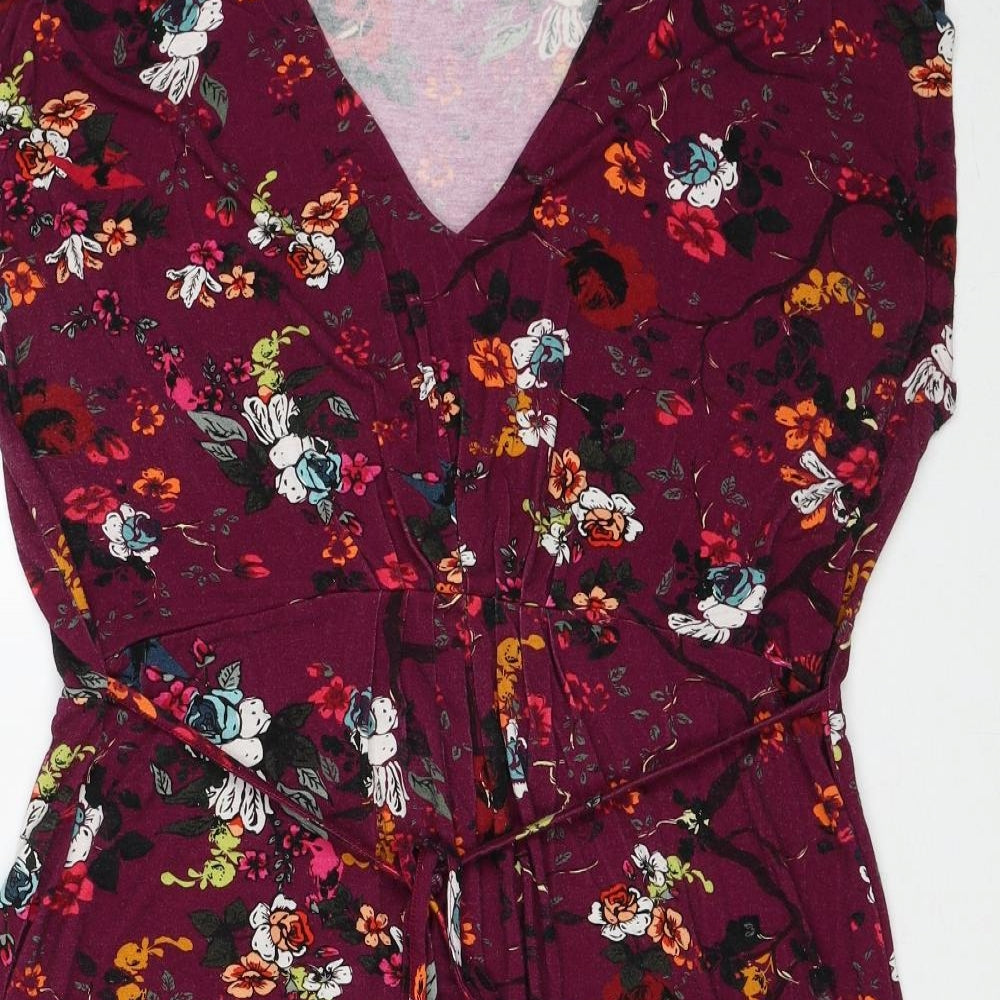 Womens Multicoloured Floral Viscose A-Line Size 16 V-Neck Pullover