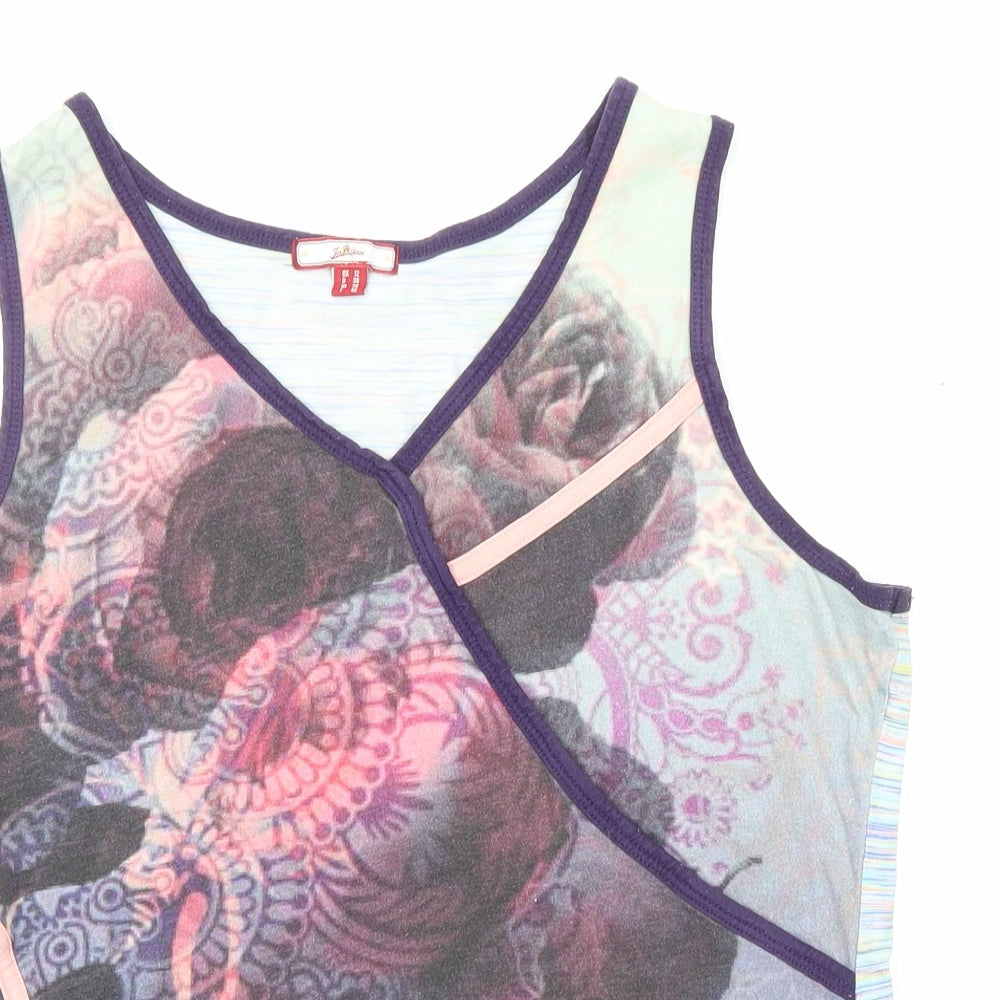 Womens Multicoloured Geometric Cotton Basic Tank Size 12 V-Neck