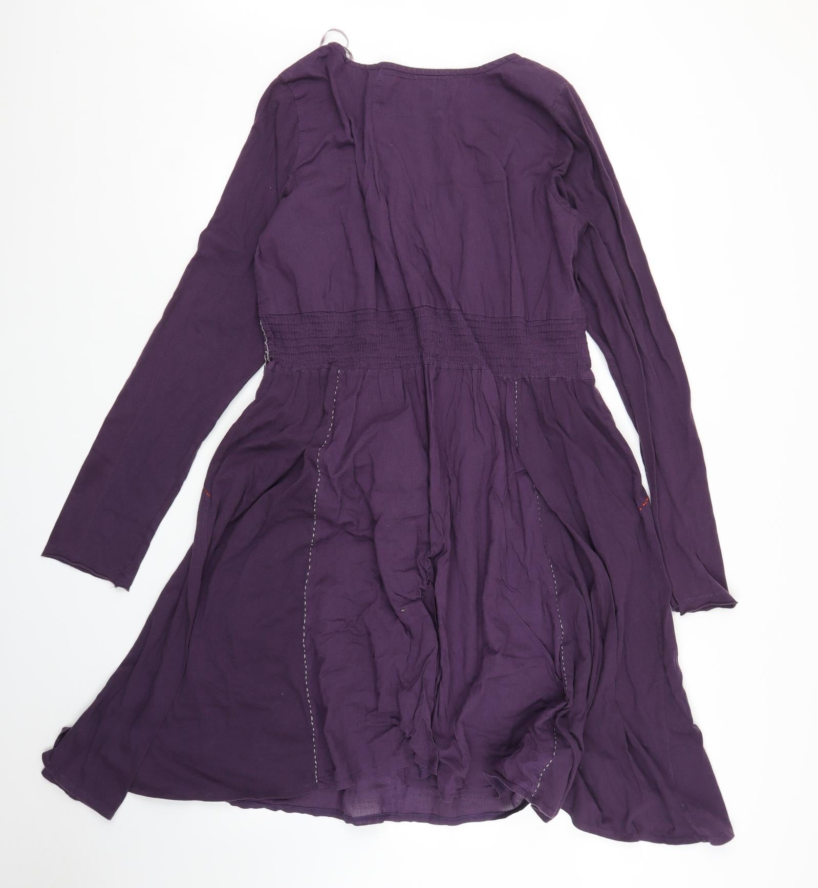 Marks and Spencer Womens Purple Viscose Shirt Dress Size 16 Collared Tie - Ribbed