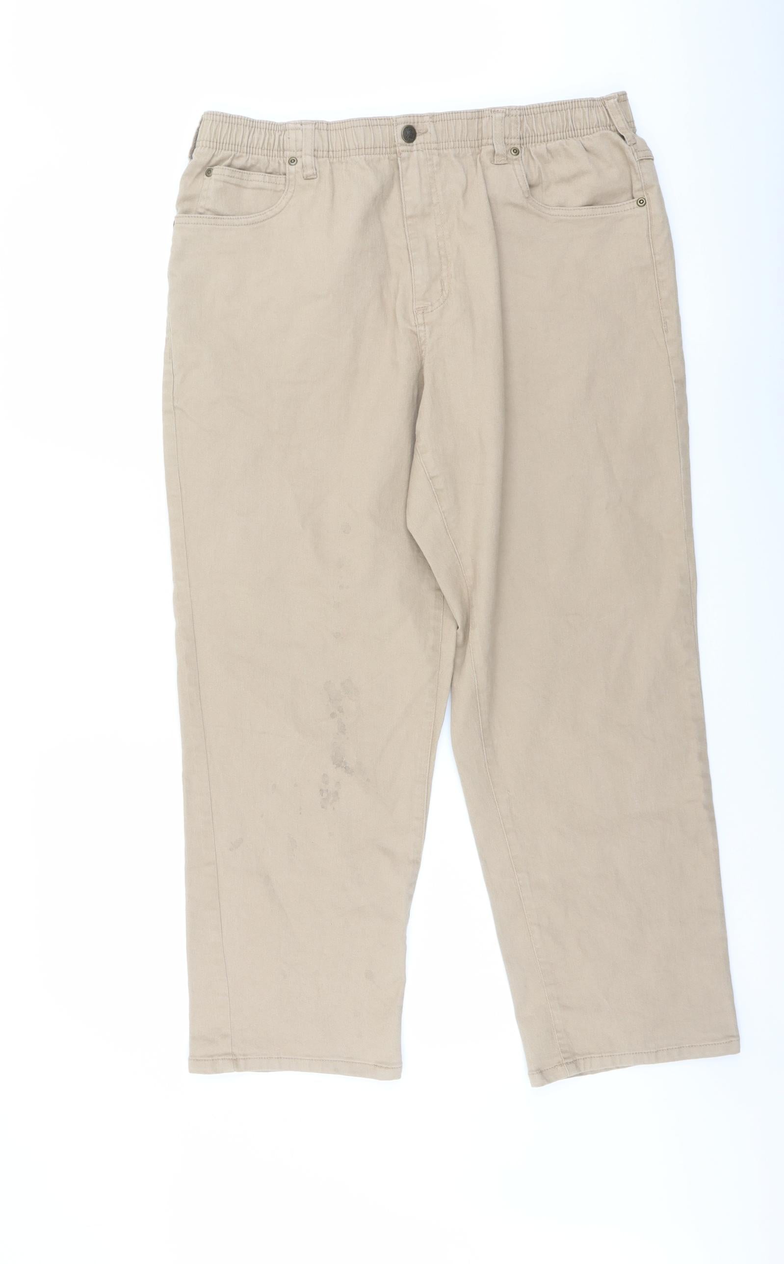 Womens Beige Cotton Straight Jeans Size 12 L28 in Regular Button