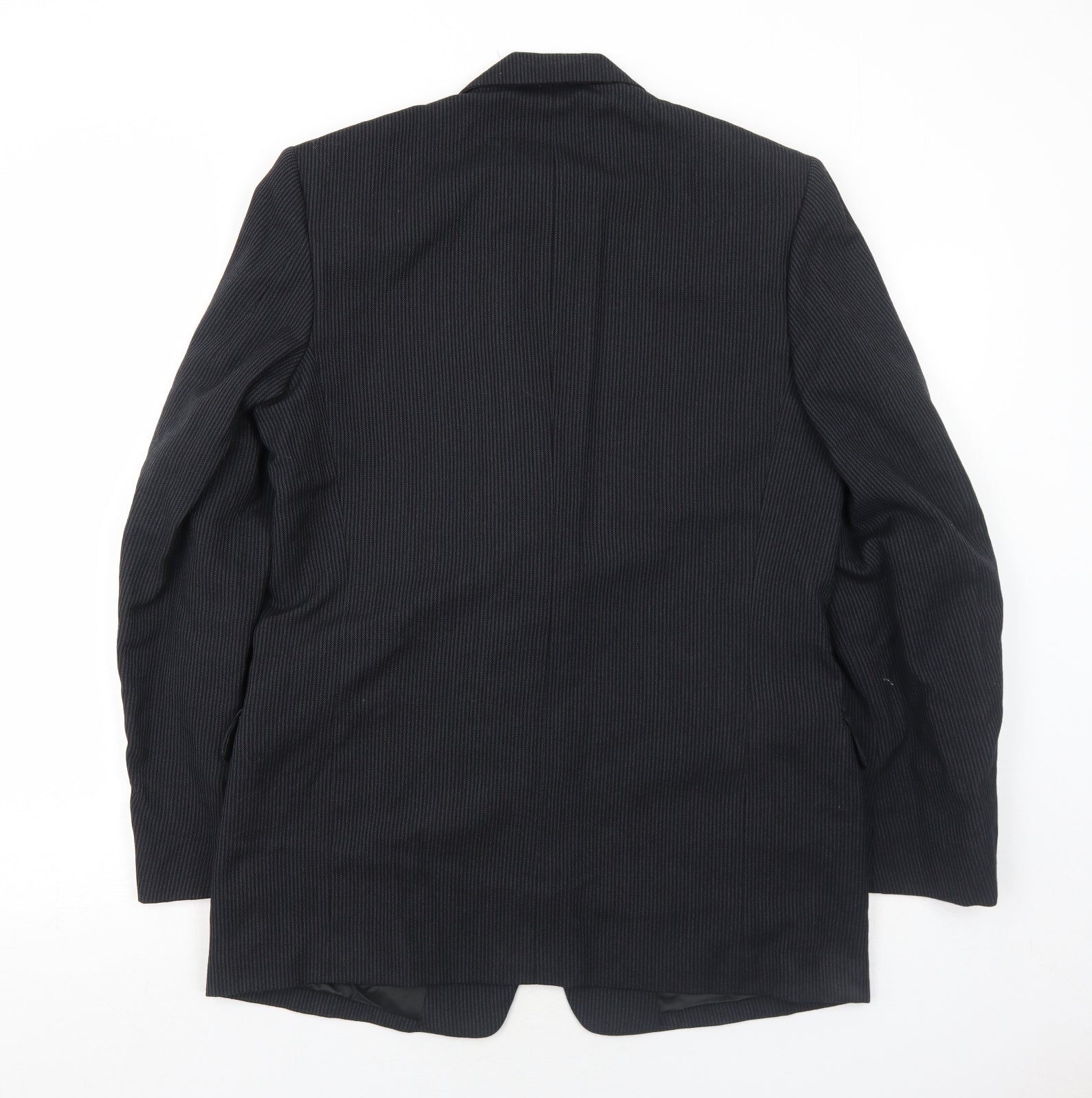 Mens Black Striped Polyester Jacket Suit Jacket Size 40 Regular