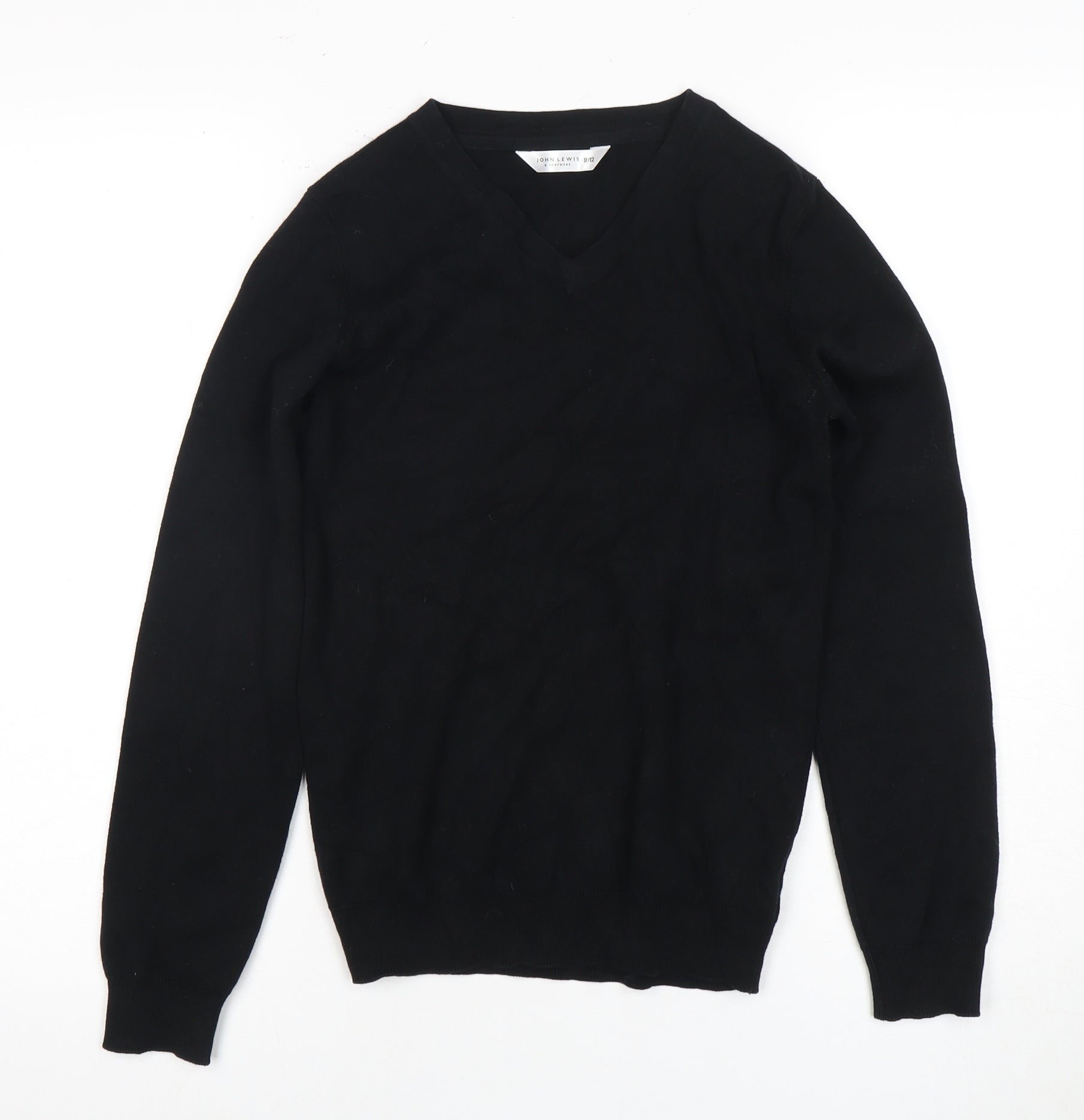 Elevate your child's wardrobe with this classic John Lewis boys' jumper. Designed for comfort and style, this black pullover is a versatile addition suitable for various occasions. Crafted from a blend of 80% high-quality cotton and 20% nylon, its tight-knit construction ensures warmth and durability, making it ideal for autumn and winter months.The jumper features a sleek V-neckline, which offers a traditional cut perfect for layering over shirts or wearing alone. With its regular fit and long sleeves, your little one will enjoy unrestricted movement for everyday activities, from school to family gatherings. The plain black colour provides an elegant touch, allowing this jumper to be styled with numerous outfit options.This pullover is not only stylish but also practical, with machine washable fabric for easy care and maintenance. Despite the lack of original sales tags, its excellent condition ensures a high-quality product that retains all its charm and functionality.Whether for casual outings or relaxed home wear, this John Lewis jumper is an essential piece that combines classic design with the premium feel and reliability synonymous with this renowned brand. Get ready to keep your child snug and stylish with this splendid wardrobe staple.