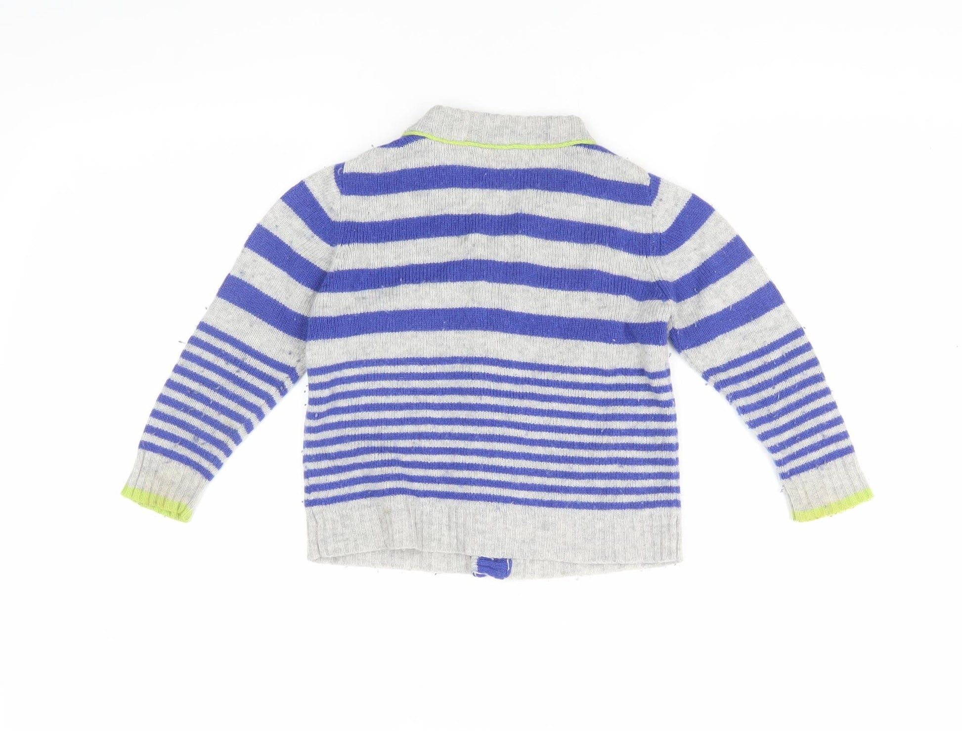 This delightful Boys' Blue Striped Cardigan from John Lewis brings the perfect balance of warmth and style to your child's wardrobe. Crafted for comfort, it features a striking blue and grey striped pattern that adds a vibrant splash of colour. The cardigan is designed with a V-neckline, complementing the button-down closure for a classic look that is both versatile and trendy. Made from a soft wool blend with 80% lambswool and 20% nylon, this knit garment ensures a cosy fit, ideal for cooler spring and autumn days. Its long sleeves cater to all-day comfort, making it an excellent choice for casual occasions or everyday wear. The cardigan is tailored for regular fit, allowing your little one to move freely and comfortably. As with all fine garments, this piece requires hand washing to maintain its quality and softness. Being in excellent condition, this stylish cardigan presents an opportunity not to be missed. Perfect for pairing with jeans or trousers, it’s a timeless addition to any young boy's clothing collection.