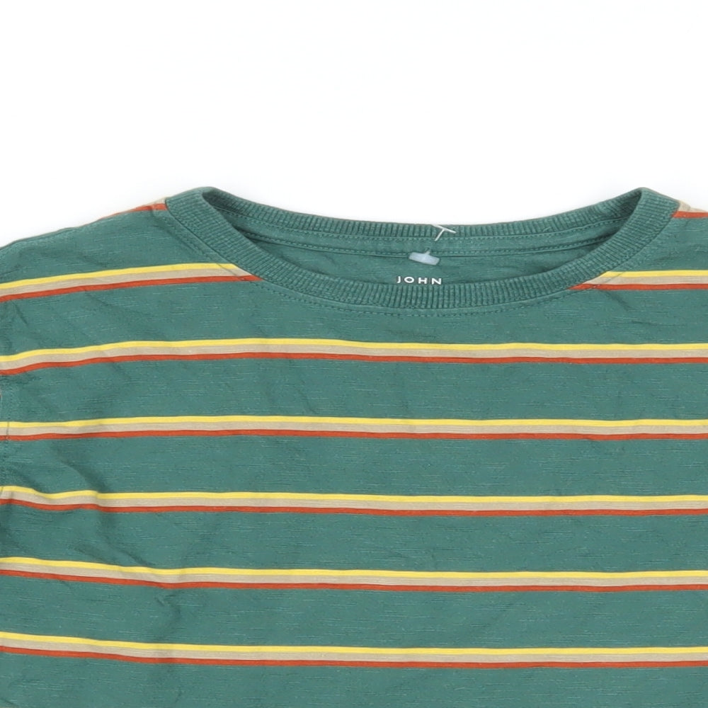 Boys Green Striped Cotton Pullover T-Shirt Size 9 Years Crew Neck Pullover