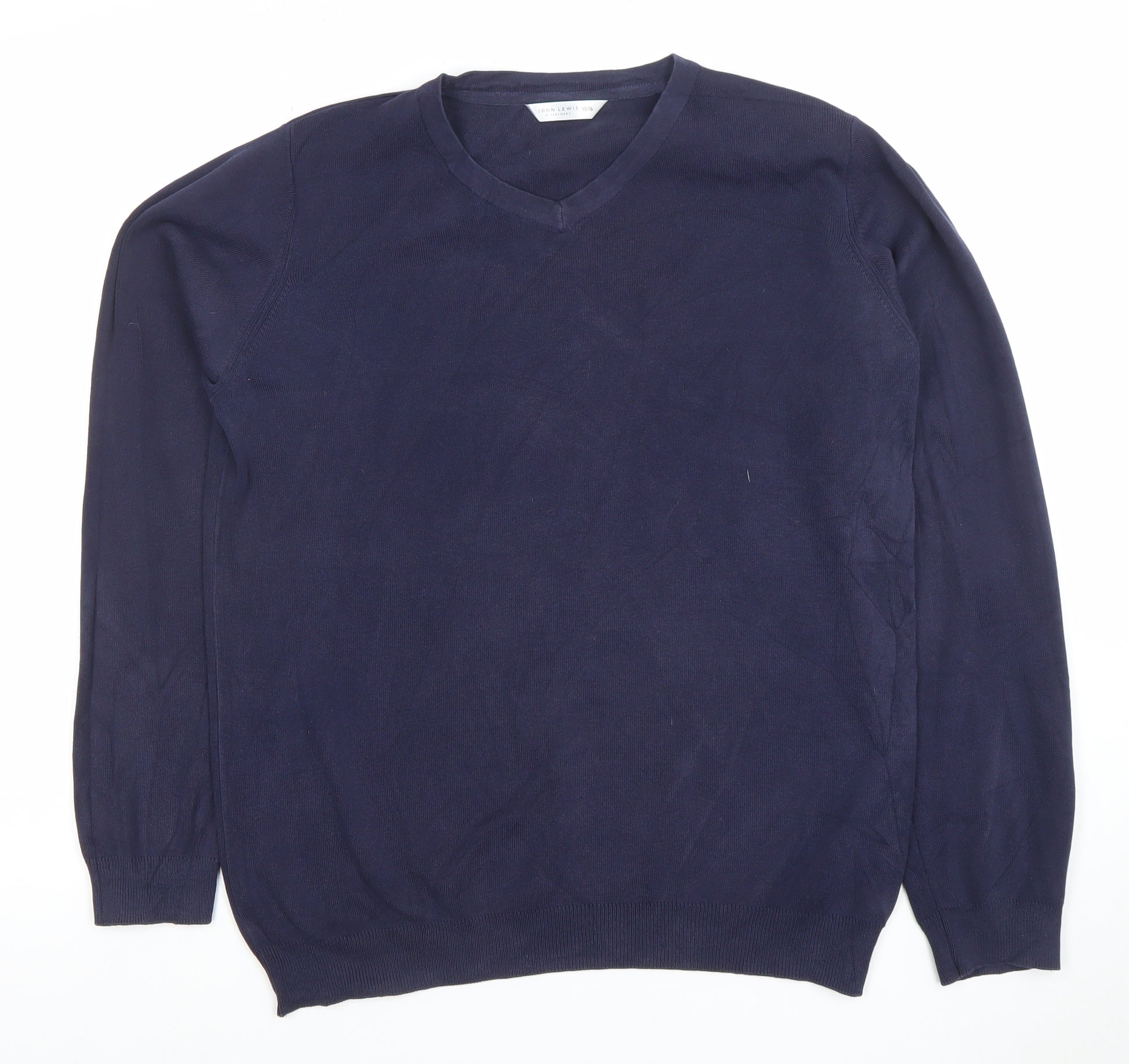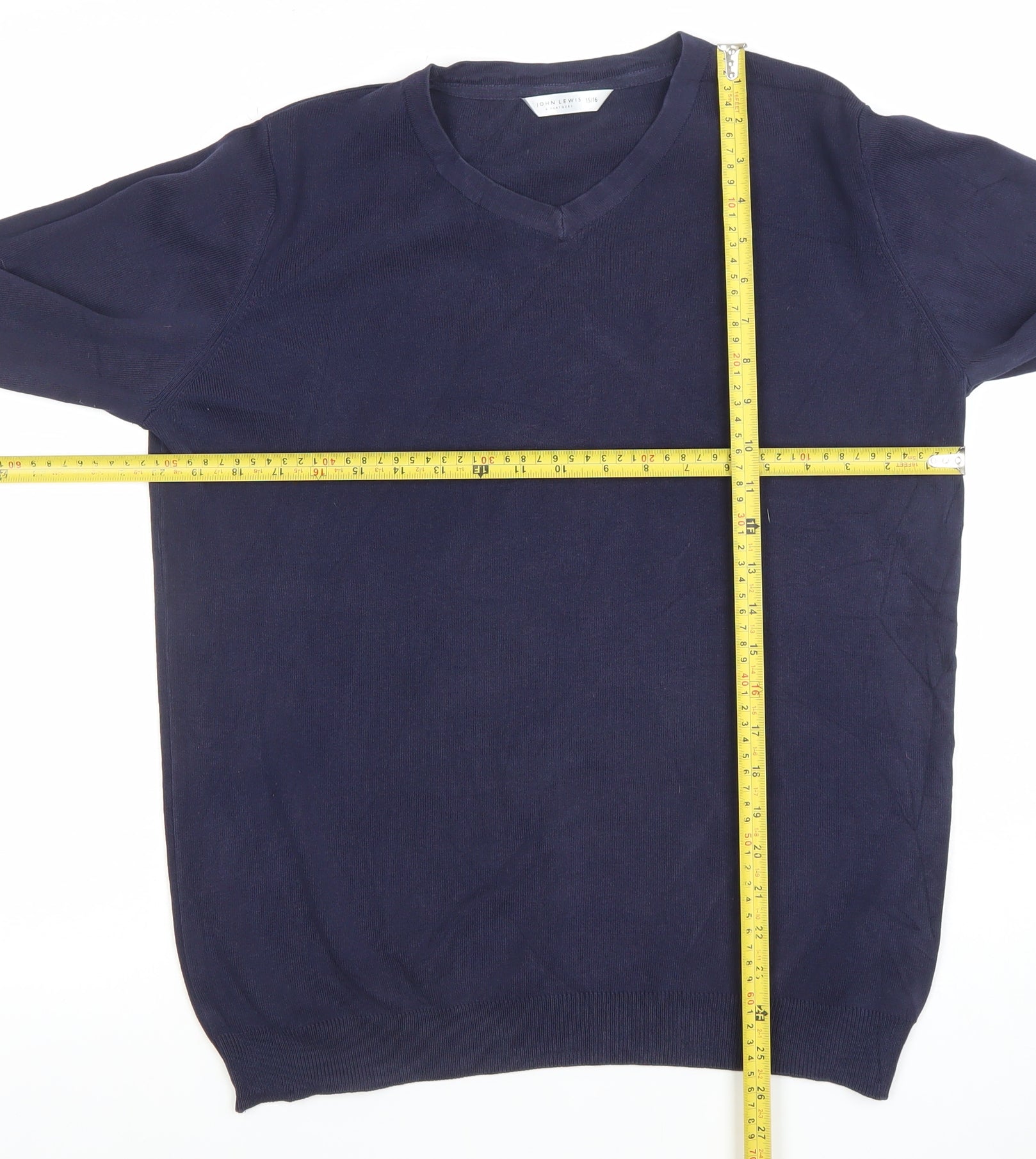 Boys Navy Blue V-Neck Jumper 15/16 Years Cotton Blend Knit