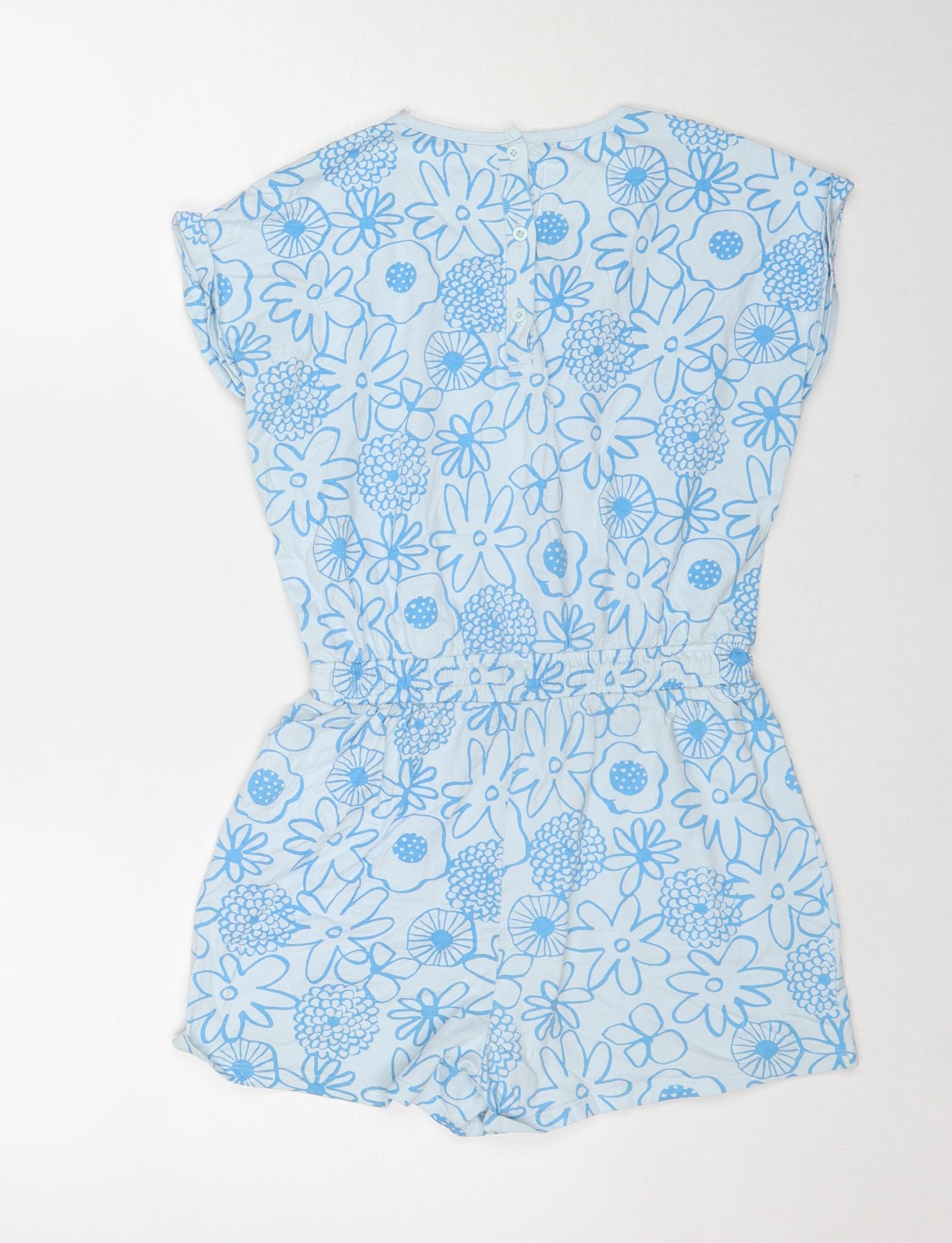 Girls Blue Floral Cotton Playsuit One-Piece Size 12 Years L3 in Button