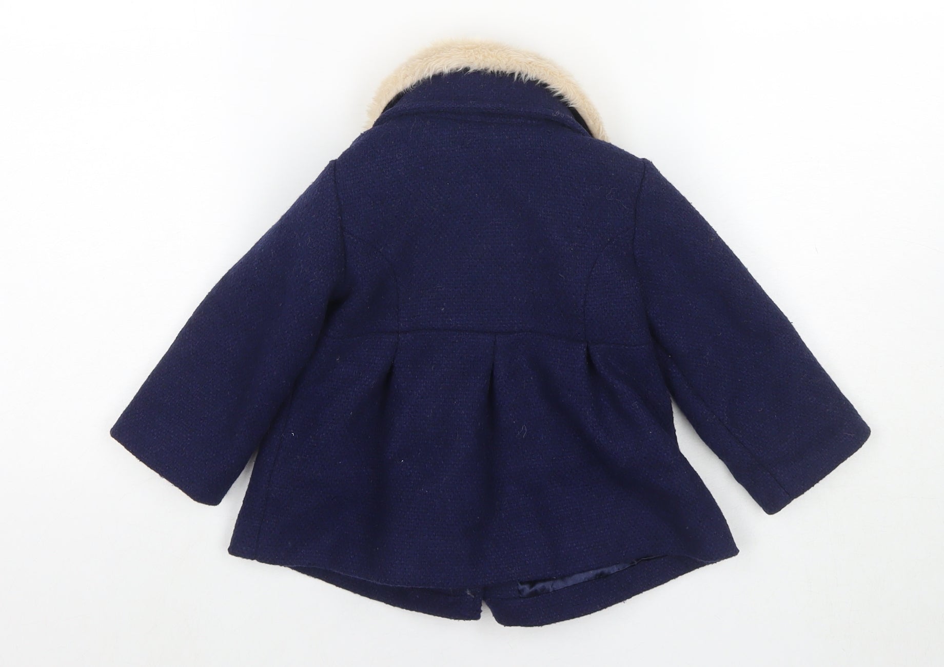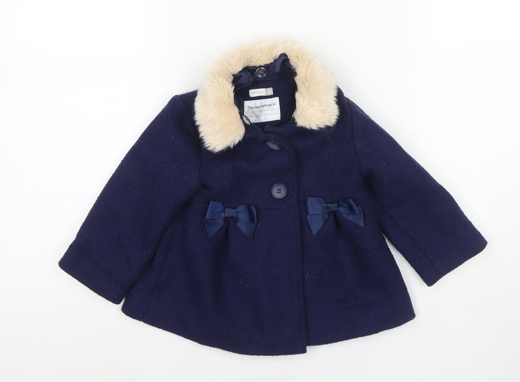 Girls Blue Overcoat Coat Size 9-12 Months Button