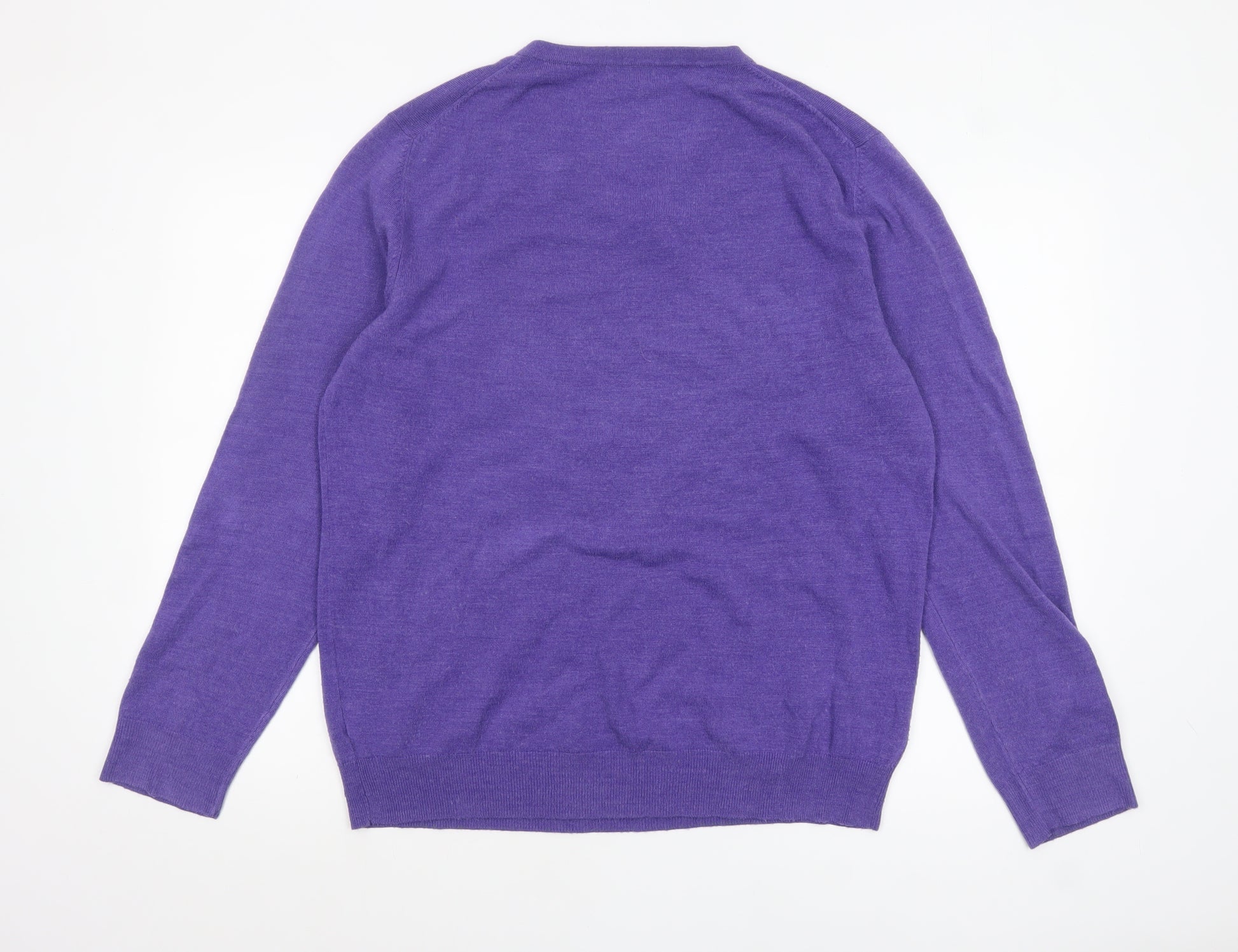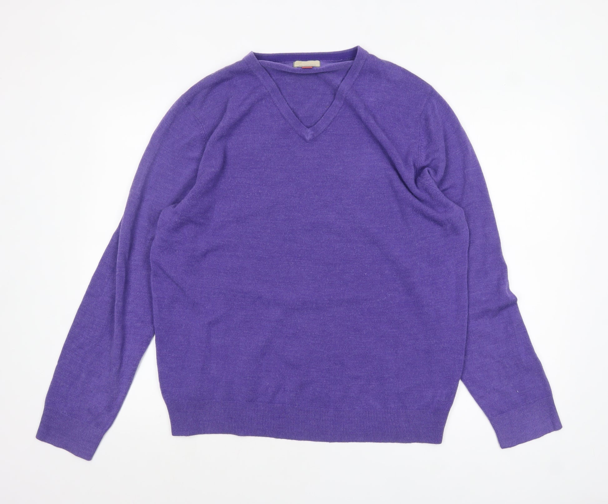 Men Purple V-Neck Acrylic Pullover Jumper XL