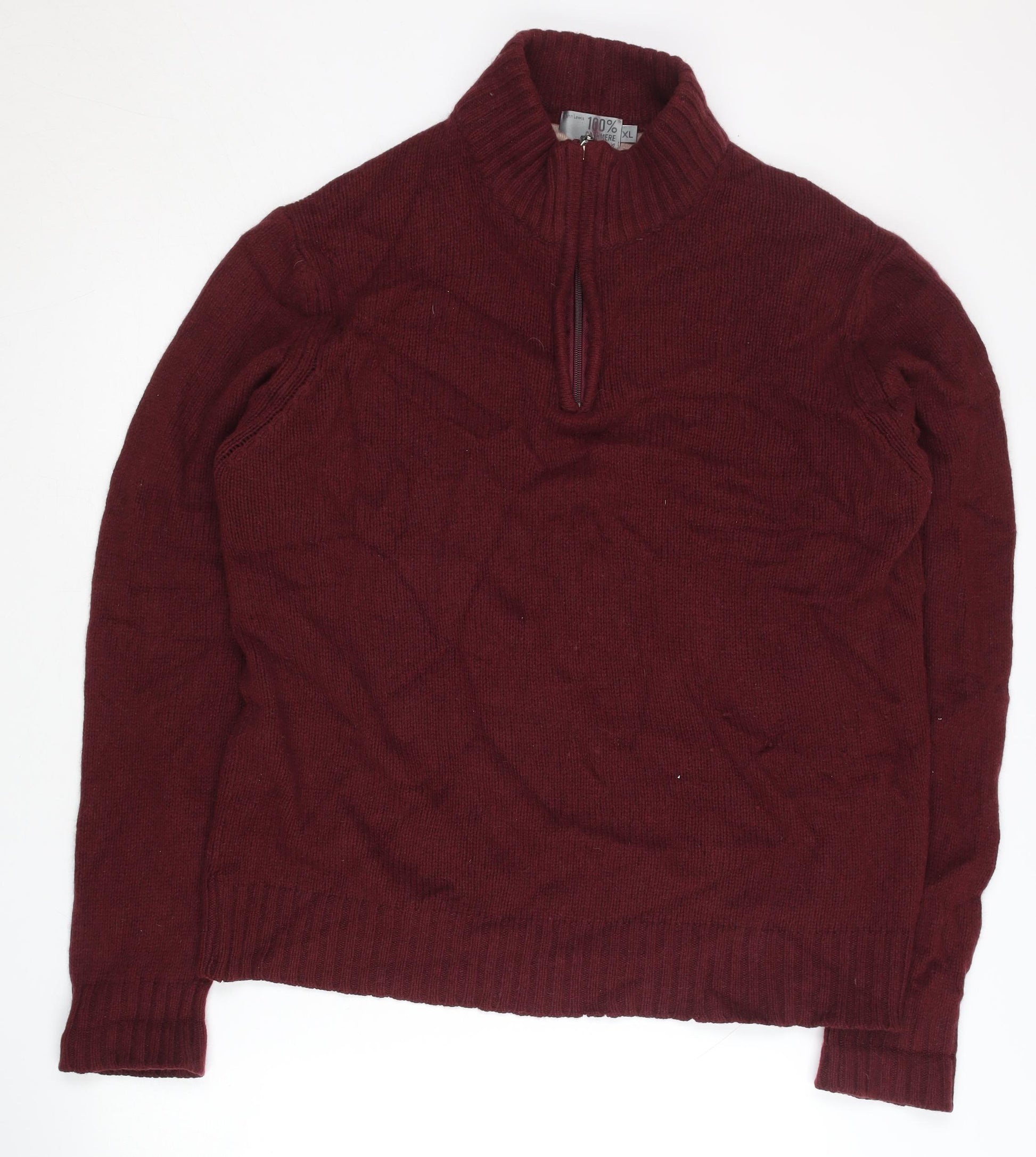 Experience luxury and warmth with this John Lewis men's pullover, crafted from 100% cashmere for an exceptionally soft feel. In a rich red hue, this jumper is perfect for adding a touch of elegance to your autumn and winter wardrobe. The high neck and long sleeves provide extra warmth, while the 1/4 zip adds a modern twist to a classic design. This tight-knit piece features a regular fit, ensuring both comfort and style for any casual occasion. Made for those who value quality and sophistication, this jumper is ideal for layering or wearing on its own. Hand wash only to retain its luxurious feel and extend its life. Perfect for upgrading your seasonal wardrobe with a touch of timeless class.