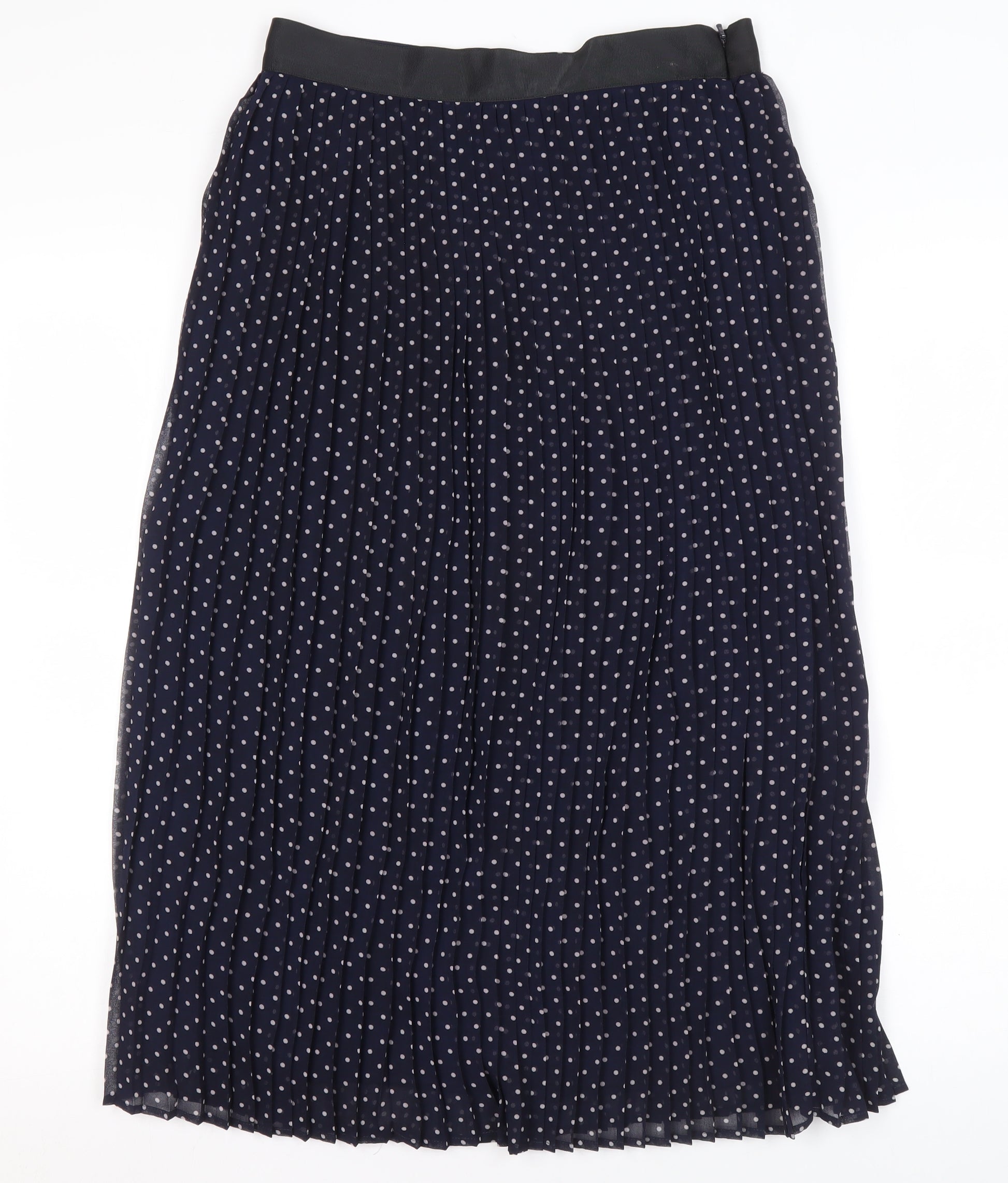 Step out in style with this elegant John Lewis Women's Blue Pleated Midi Skirt, a versatile addition to any wardrobe. Crafted from 100% polyester, this beautiful skirt offers a delightful combination of style and comfort. The rich blue colour adorned with charming polka dots adds a playful yet sophisticated touch, making it perfect for casual outings.Featuring a flattering pleated style, this skirt falls to a graceful midi length, ensuring you maintain a chic silhouette whether you're heading to a casual lunch or a relaxed evening gathering. The skirt is thoughtfully designed with a zip closure for a secure and comfortable fit, while the mid-rise waistline flatters any figure.The skirt is lined, providing added comfort and a luxurious feel against the skin. Its machine washable fabric ensures easy care, making it a practical choice for everyday wear. Despite a small tear inside the lining, which is not visible from the outside, the skirt remains elegant and ready to wear.Ideal for casual occasions, this stylish piece allows you to make a fashion statement with minimal effort. Perfect for any season, pair it with a simple top and flats for a daytime look or dress it up with heels and accessories for a more polished ensemble.Don't miss the opportunity to add this stylish skirt to your collection. Its timeless design and exquisite detailing make it a must-have piece for any fashion-forward individual.