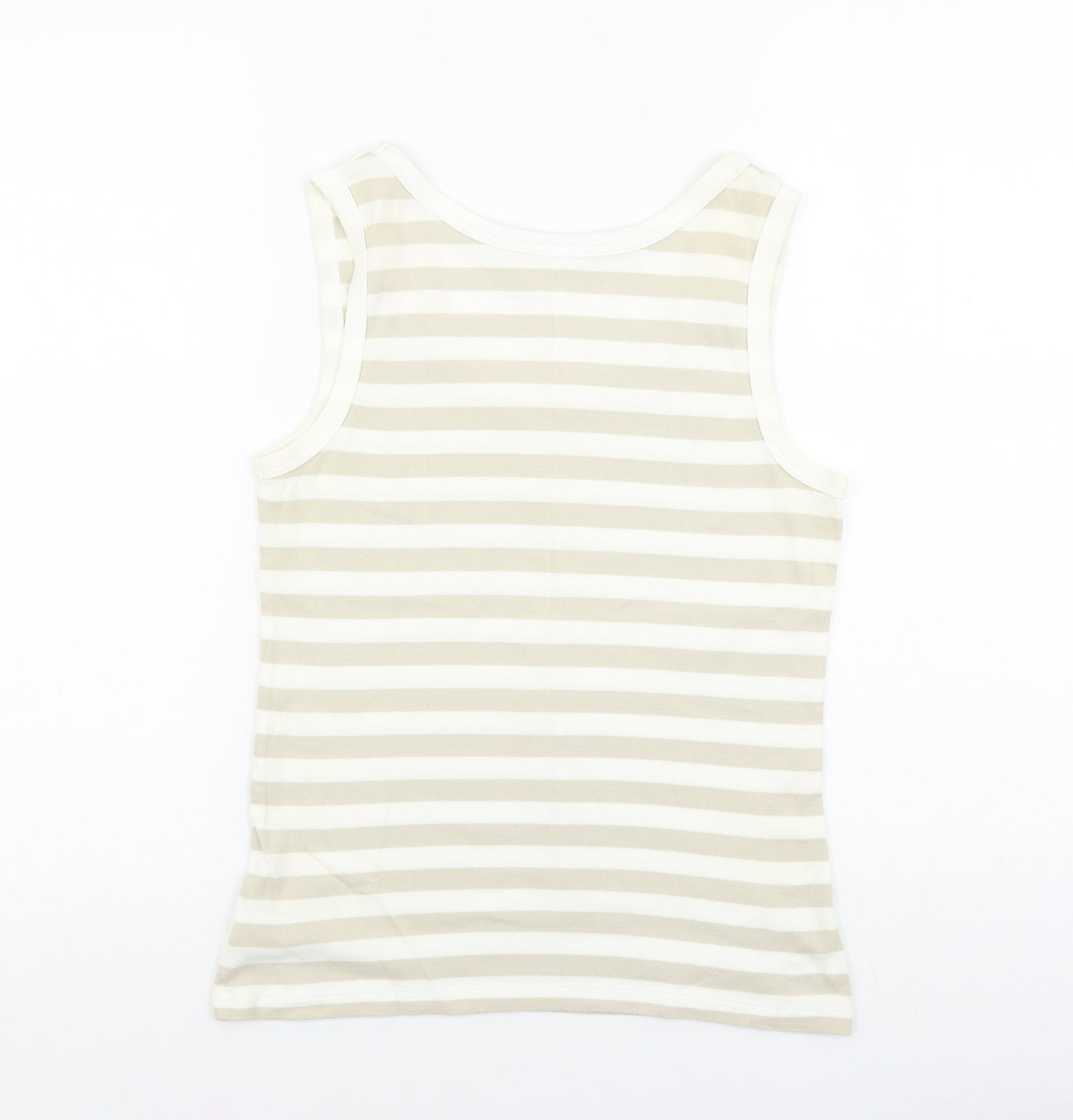 Womens Brown Striped 100% Cotton Basic Tank Size 12 Scoop Neck