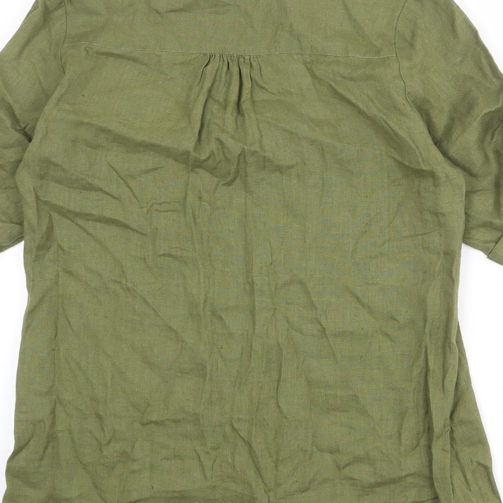 Womens Green Linen Basic Button-Up Size 14 V-Neck