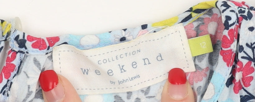 Add a pop of colour to your wardrobe with this charming women's floral blouse from John Lewis's Weekend collection. Crafted entirely from soft viscose, this piece is not only lightweight but also perfect for warm weather. The multicoloured floral pattern, enriched with vibrant red, blue, and yellow hues, offers a fresh and lively look, perfect for both spring and summer outings. The blouse features a classic crew neck and short sleeves, providing a timeless style that pairs beautifully with jeans or skirts for a relaxed, casual ensemble. Designed for a regular fit, it ensures comfort without compromising on style. This blouse is machine washable, adding convenience to its list of features. Ideal for casual occasions, it brings both flair and ease into your everyday attire. A modest button closure at the back adds a touch of subtle elegance to this well-crafted item. Whether you're heading out for a weekend lunch or strolling through the park, this versatile piece is sure to become a staple in your collection. With its excellent condition and no visible wear, don't miss the chance to add this fashionable garment to your selection.