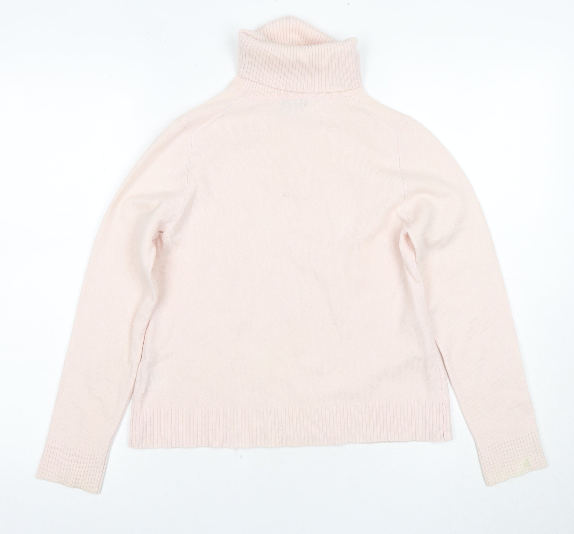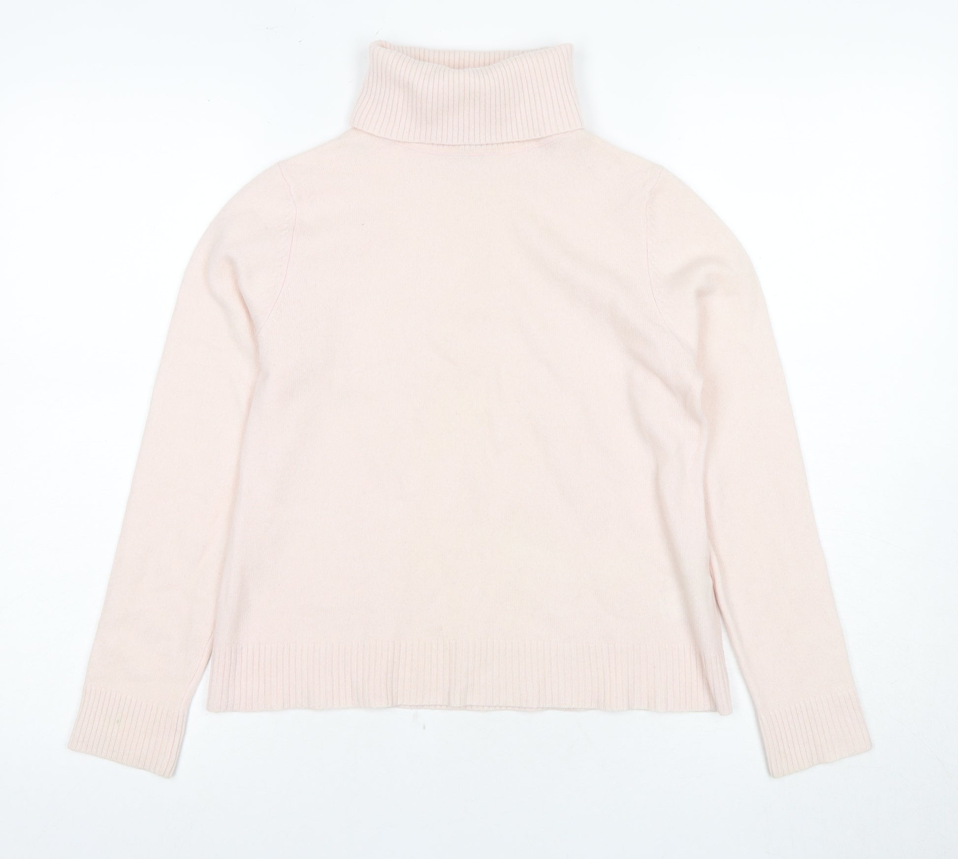 Indulge in the luxurious comfort of this beautiful John Lewis Cashmere Jumper. Crafted from 100% cashmere, this stunning piece is perfect for adding a touch of elegance to your autumn and winter wardrobe. The soft pink hue is both timeless and versatile, making it an ideal addition for casual occasions or cozy evenings. Featuring a chic roll neck design and long raglan sleeves, this jumper offers a flattering fit for regular sizes. The knit fabric ensures warmth while maintaining a lightweight feel. Perfectly paired with your favourite jeans or tailored trousers, this classic pullover combines style and comfort seamlessly. The jumper is machine washable, ensuring easy care and maintenance. A slight wear near the shoulder adds character without compromising on quality, making this piece an essential for any fashion-forward individual. Explore the versatility of cashmere and elevate your outfit with this timeless piece.