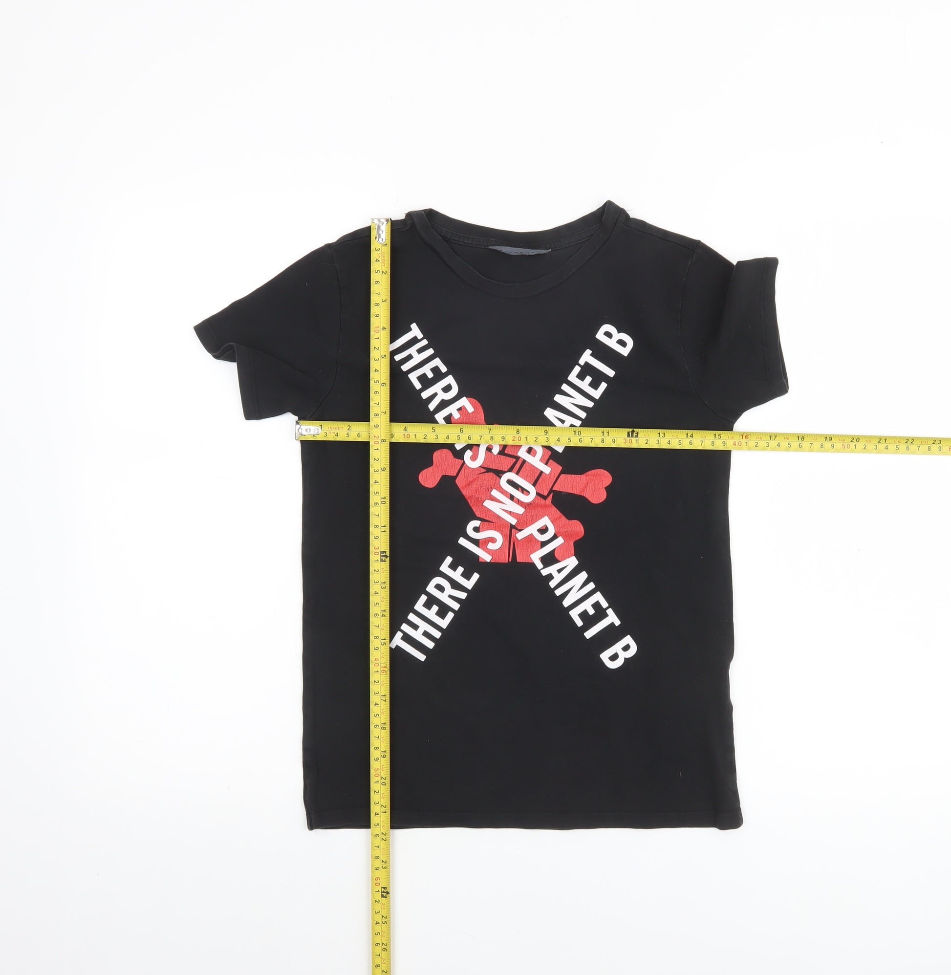 Boys Black Graphic Print Cotton T-Shirt Age 10