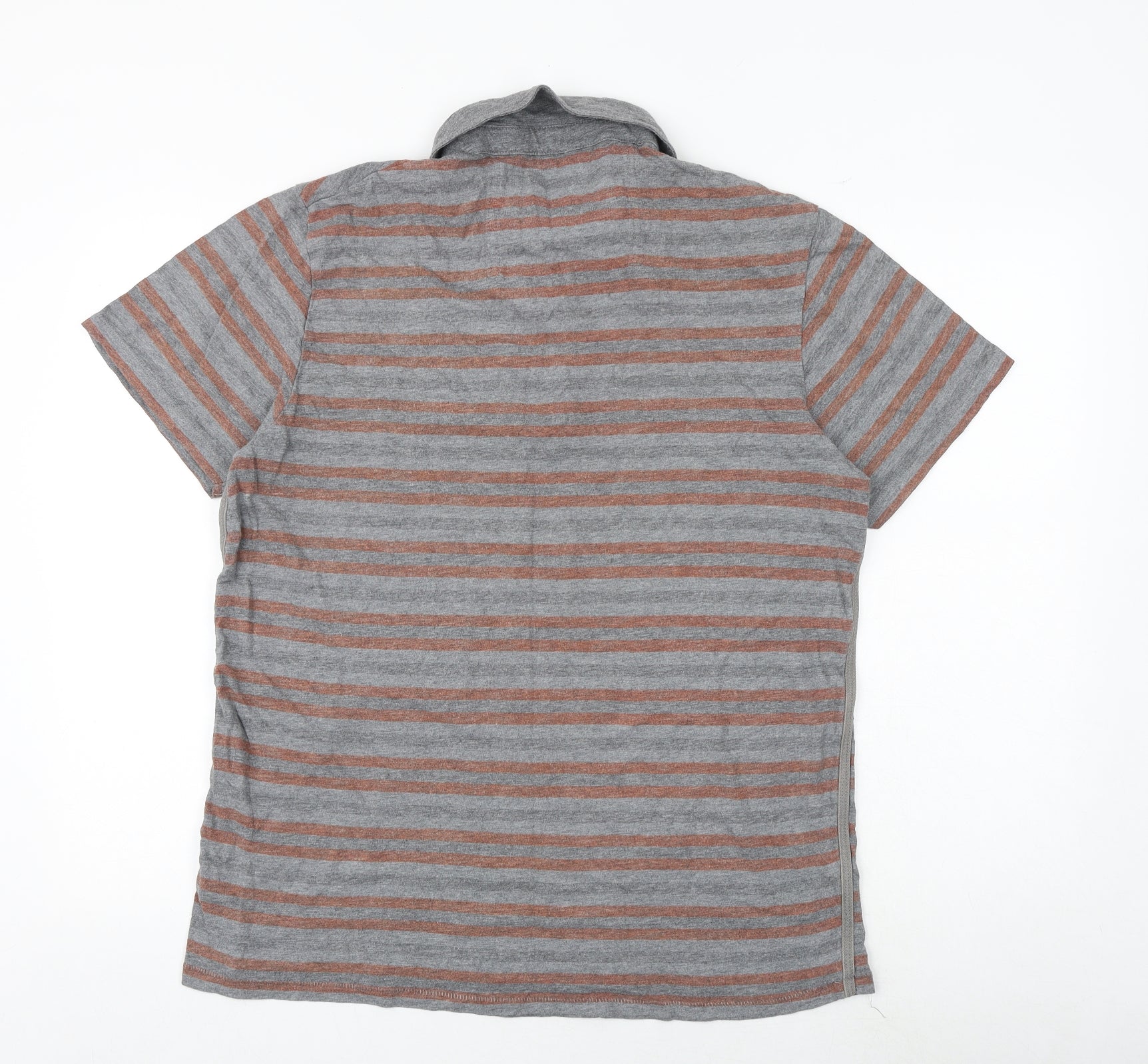 Mens Grey Striped 100% Cotton Polo Size L Collared Button