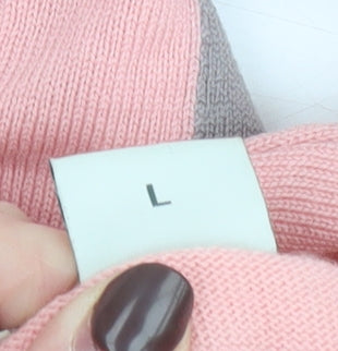 Women Pink Merino Wool Geometric Pullover Jumper L