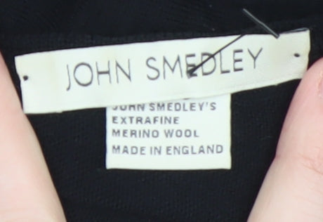 This elegant John Smedley women’s black wrap jumper offers a timeless blend of luxury, warmth, and sophistication. Crafted in England from 100% extrafine Merino wool, the knit provides a lightweight yet warm feel that’s breathable, making it ideal for transitioning between seasons. The deep V-neckline and tie-back wrap design bring a flattering, feminine silhouette, while the long sleeves and tightly woven construction deliver a refined finish. Known for its impeccable craftsmanship, John Smedley creates knitwear that marries comfort with enduring style, and this jumper perfectly represents that tradition. u2028u2028Designed in a classic black shade, it’s versatile enough for both smart-casual office attire and relaxed weekend wear. Paired with tailored trousers or a sleek skirt, it effortlessly elevates any outfit, exuding understated luxury. The smooth, tight-knit texture adds an element of finesse, maintaining shape and quality wear after wear. The medium fit ensures a flattering drape on the body without feeling overly snug, providing comfort and freedom of movement.u2028u2028Perfect for autumn, winter, and spring seasons, this jumper can be layered under a coat during colder months or worn on its own when temperatures rise. Its pure Merino wool composition naturally regulates temperature and resists odour, ensuring freshness and durability.u2028u2028In excellent pre-owned condition with minimal signs of wear, this luxury John Smedley piece is made to last—a wardrobe staple that combines premium material with classic British elegance. Ideal for women who appreciate quality, craftsmanship, and timeless fashion, this Merino wool jumper promises enduring appeal and exceptional comfort in every wear.