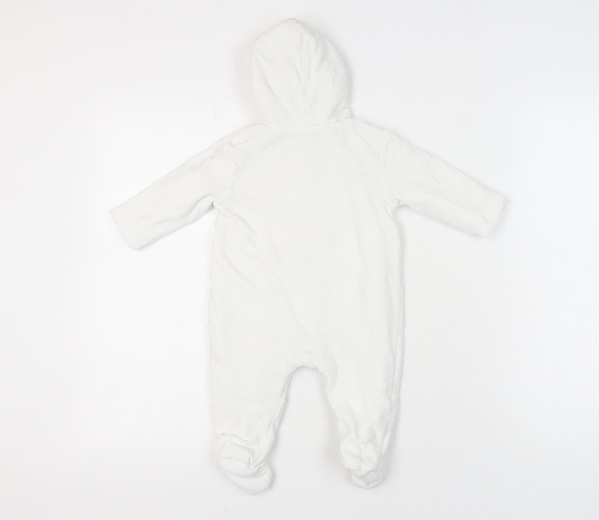 White Unisex Baby Babygrow 3-6M Hooded Embroidered Animals