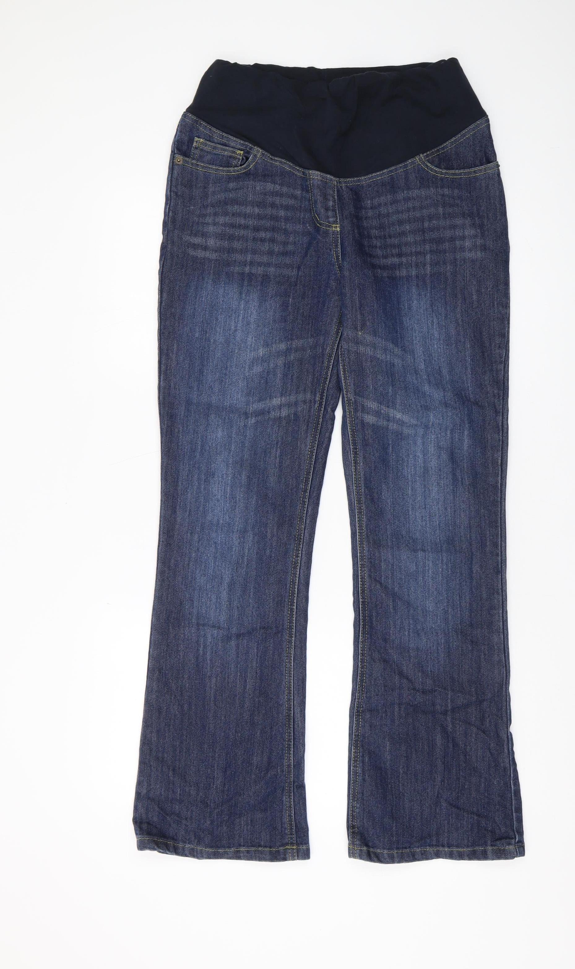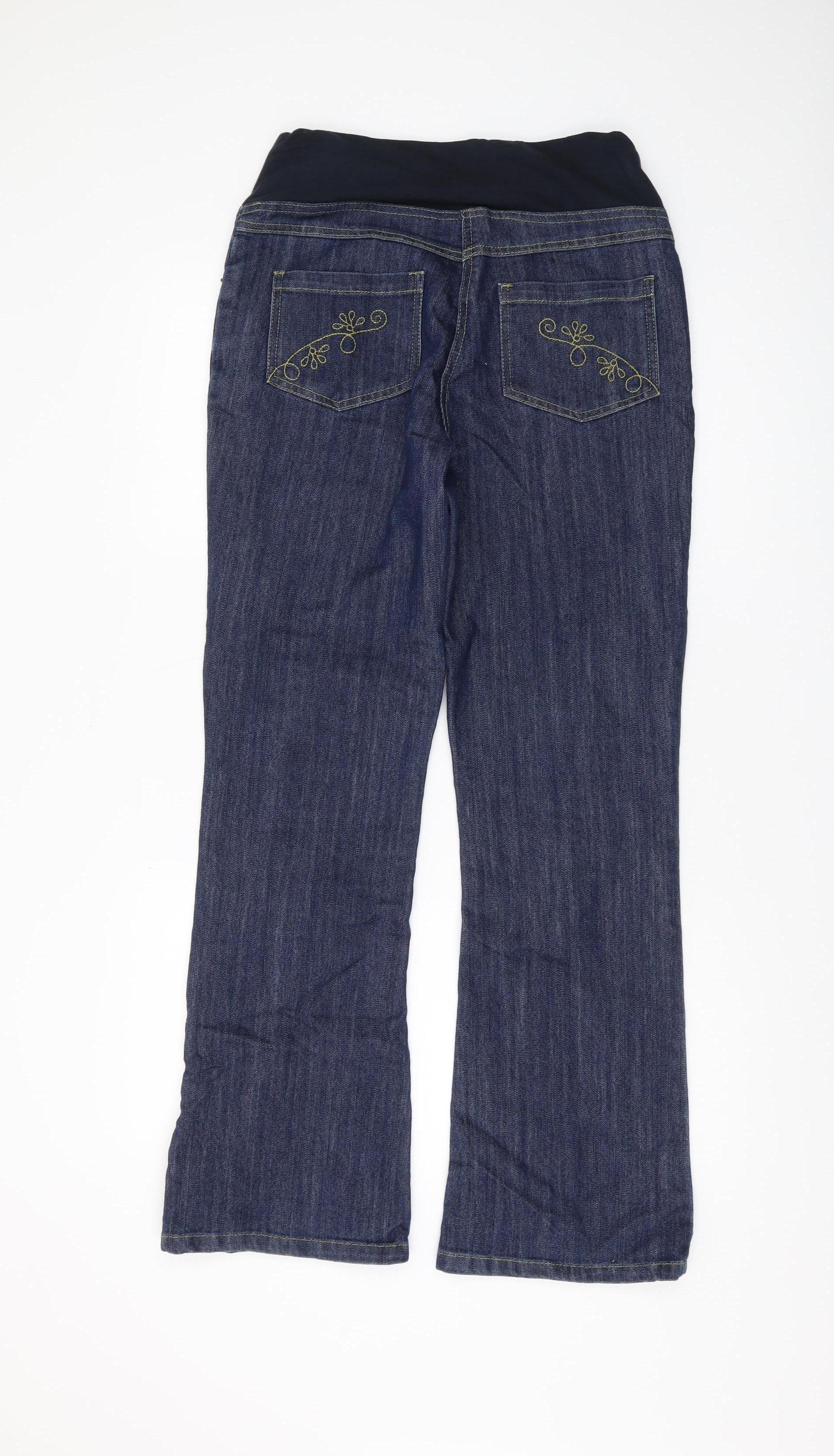 Introducing the JoJo Maman Bébé Bootcut Maternity Jeans, a must-have addition to your maternity wardrobe. Crafted from a comfortable blend of 74% Cotton, 25% Polyester, and 1% Elastane, these jeans offer just the right amount of stretch and support for expectant mothers. The regular fit and bootcut style ensure a flattering silhouette, while the medium fabric wash in a classic blue makes them versatile for everyday wear.Designed with practicality in mind, these jeans feature an elastic waist to provide extra comfort and adaptability throughout your pregnancy journey. The 5-pocket design not only adds a casual touch but also provides essential functionality for carrying small belongings. The embroidered accents add a subtle, stylish detail, elevating the overall look.Perfect for transitional seasons such as autumn, winter, and spring, these jeans are machine washable, ensuring easy upkeep. Although it's in excellent condition with minimal signs of wear, the jeans do not come with original sales tags. Nevertheless, they maintain their integrity, perfect for pre-loved maternity wear shopping.Whether you're running errands or enjoying a casual day out, these jeans provide the foundation for numerous stylish outfits. Pair them with your favourite tops or maternity shirts for a trendy, comfortable ensemble. Offering style and functionality, the JoJo Maman Bébé Bootcut Maternity Jeans are an investment in comfort and style that you will appreciate throughout your pregnancy.