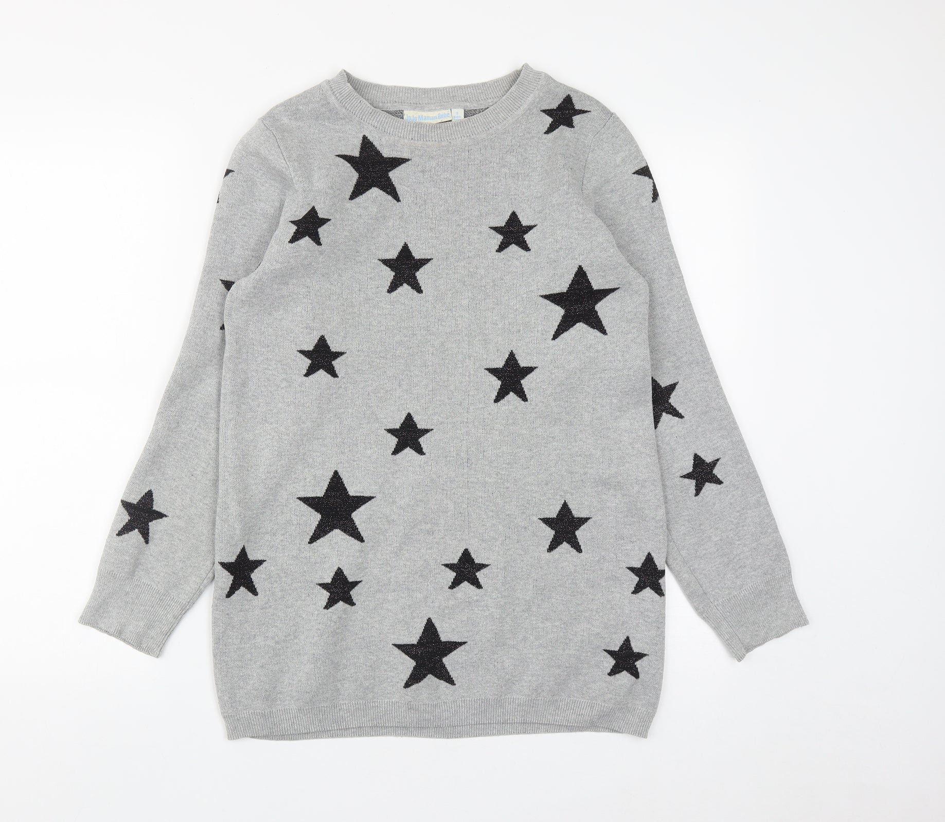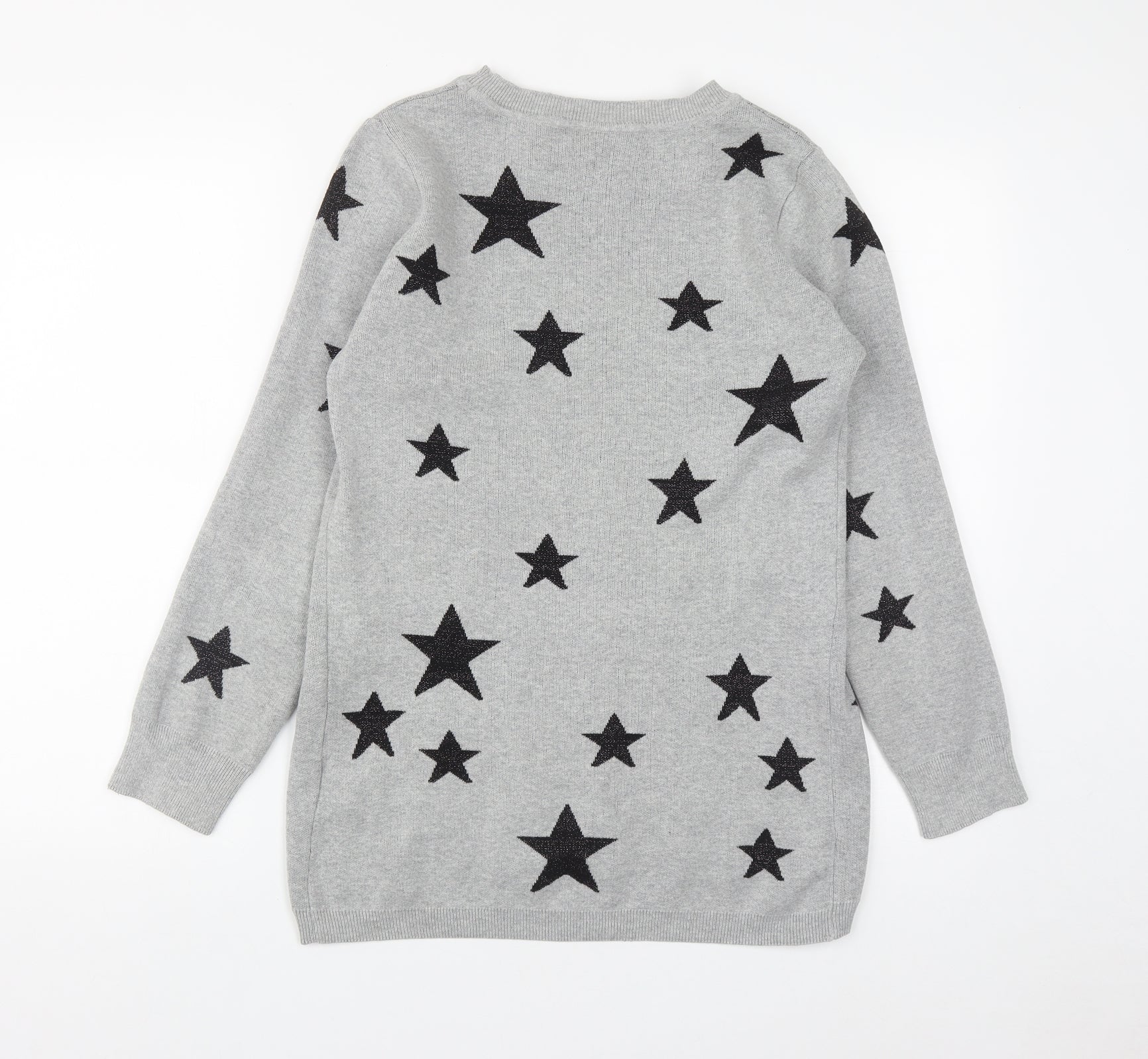 Womens Grey Round Neck Cotton Pullover Jumper Size S - Star print