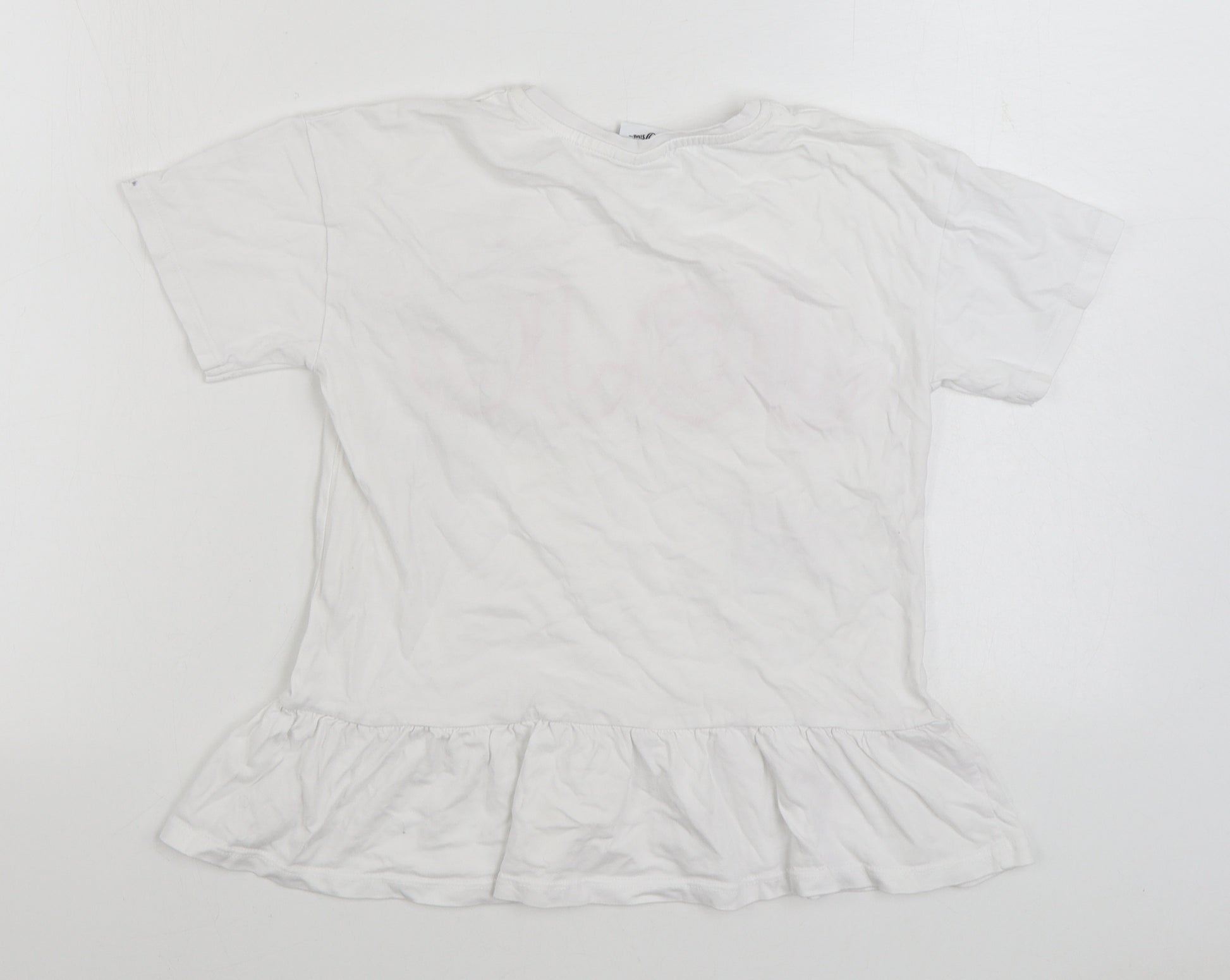 Girls White Cotton Basic T-Shirt Size 9-10 Years Round Neck Pullover