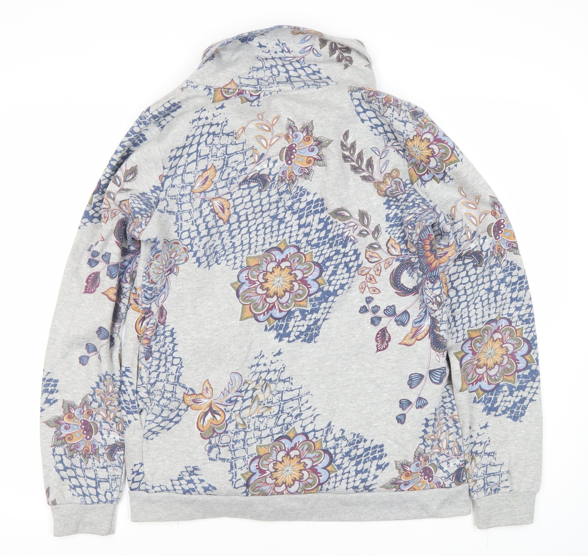 Women's Grey Floral Full Zip Sweatshirt Size 12
