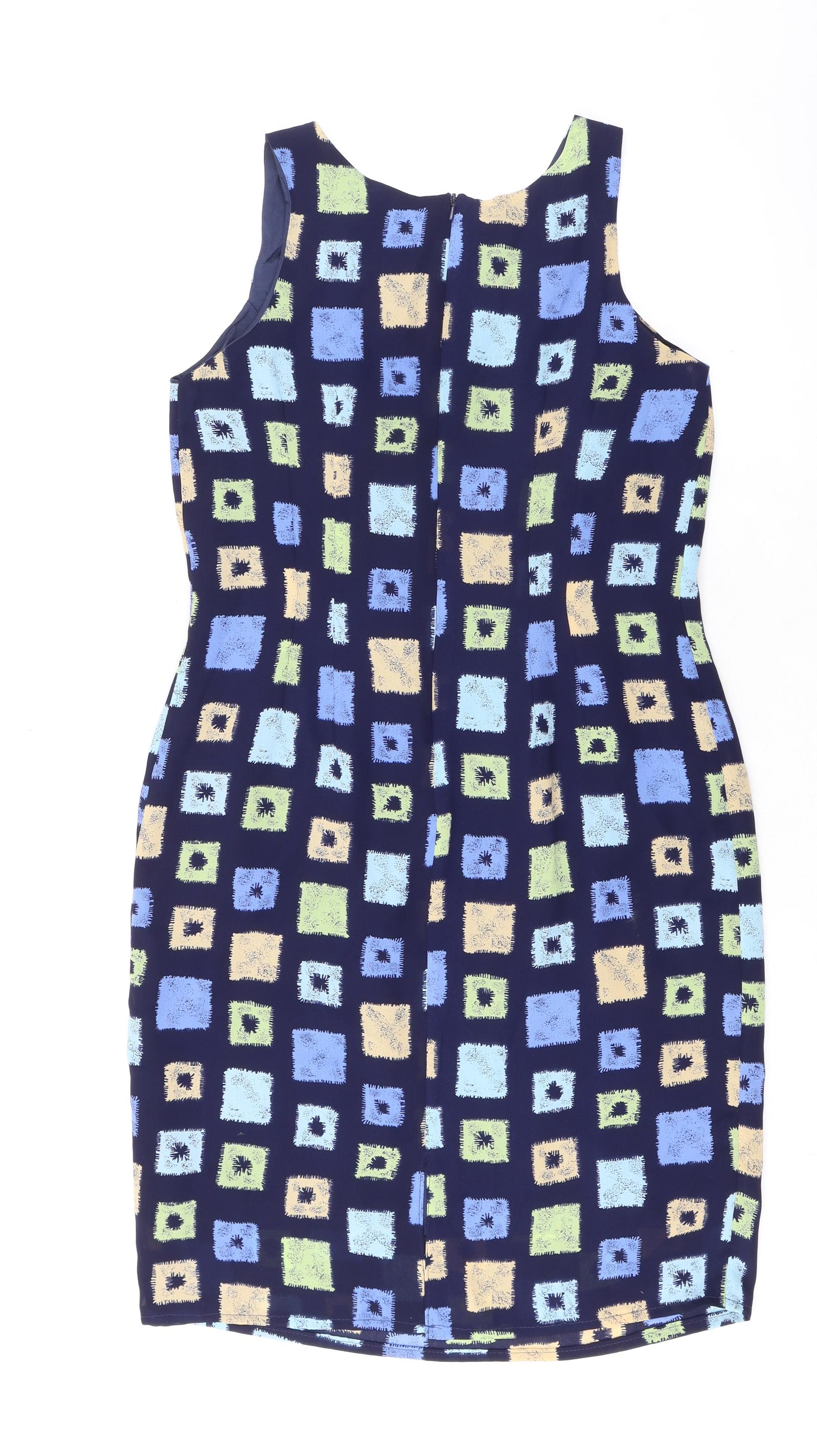 Womens Blue Geometric Polyester Bodycon Size 16 Round Neck Zip