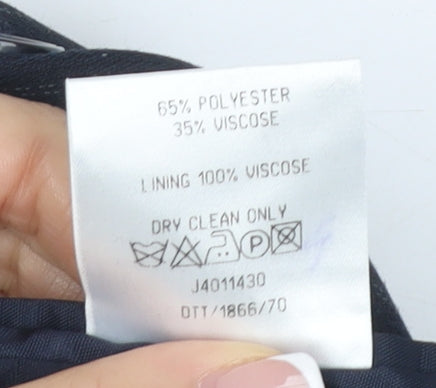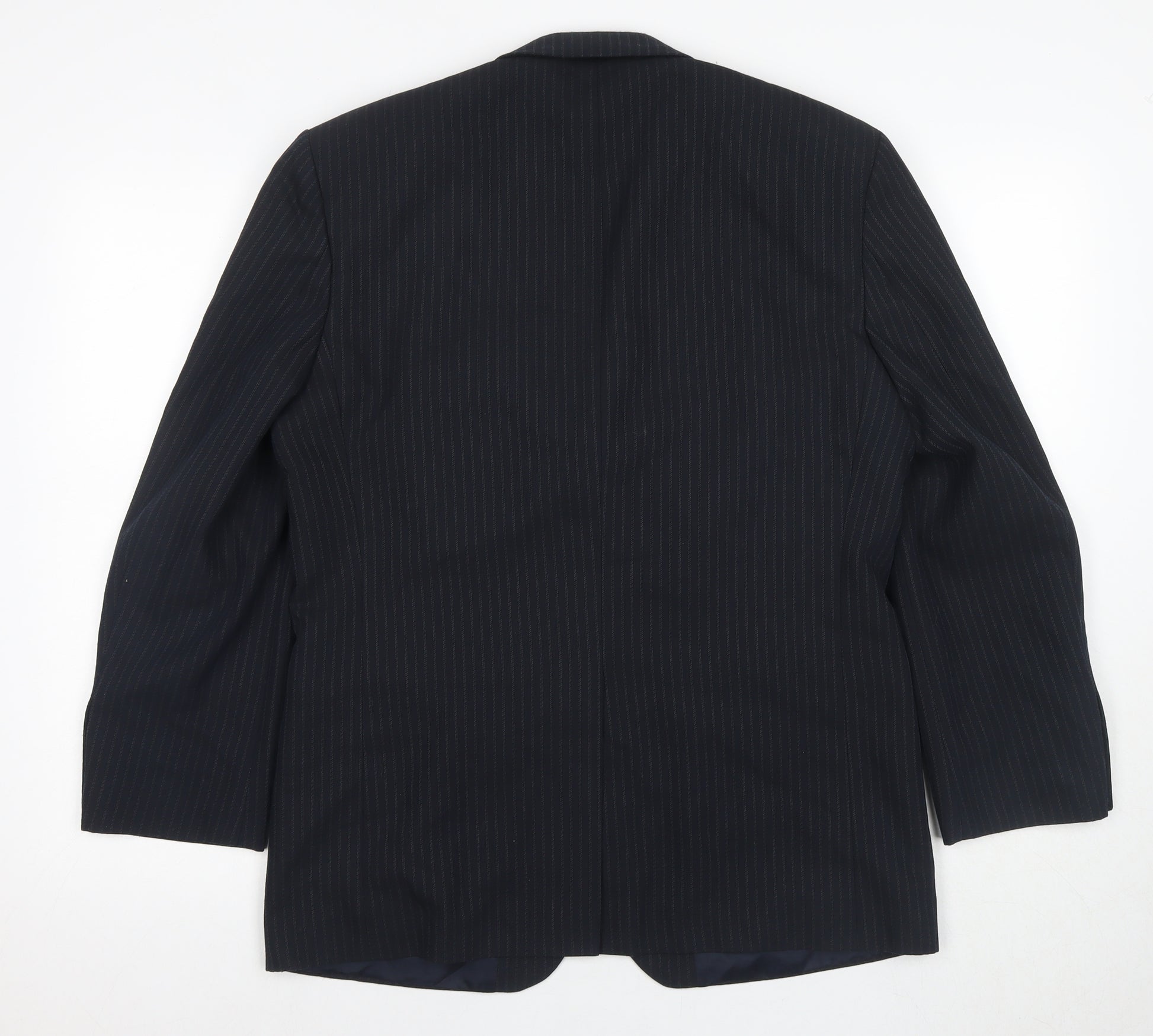 Elevate your formal attire with this Jonathan Adams black pinstripe blazer, perfect for making a striking impression at any formal or professional occasion. Tailored for a men’s size 38, this blazer boasts a sophisticated single-breasted design with notch lapels, ideal for those who favour a dignified, classic look. The blazer features a three-button front and is elegantly detailed with a four-button sleeve style, further enhancing its refined appeal.Crafted from a premium blend of 65% polyester and 35% viscose, this blazer offers durability and a sleek, polished finish. Its short length provides a modern edge, and the single-vented back ensures ease of movement, while the striped pattern adds a touch of timeless elegance. Designed with a focus on autumn and winter fashion, this piece is perfect for keeping you stylish through the cooler months.Whether you’re headed to a business meeting or attending a formal evening event, this blazer will provide you with a sharp, stylish silhouette that's hard to overlook. Pair it with your favourite suit trousers for a complete look or dress it down with dark jeans for a smart casual appearance. With minimal signs of wear, this blazer is in excellent condition, making it a fantastic addition to your wardrobe at an unbeatable value.
