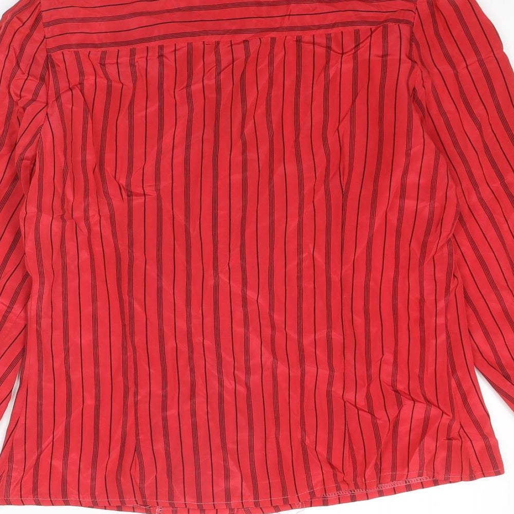Womens Red Striped Acetate Basic Button-Up Size 12 Mock Neck
