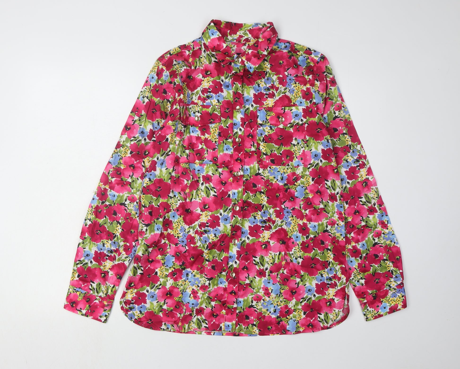 Embrace springtime elegance with this Jones New York Women's Multicoloured Floral Button-Up Shirt, perfect for adding a vibrant touch to your casual wardrobe. Expertly crafted from 100% cotton, this beautiful shirt offers both comfort and style. The striking floral pattern features an array of vivid colours set against a white background, creating a standout piece that's sure to attract compliments. Designed with a classic collared neckline and long sleeves, this shirt is a versatile addition to your collection, suitable for pairing with jeans or skirts for various occasions. Whether you're heading out for a day with friends or relaxing at home, the regular fit and soft woven fabric ensure you stay comfortable and chic. Accented with delicate buttons, this piece embraces a subtle yet fashionable appeal. Machine washable for easy care, it’s an effortless choice for your spring and summer wardrobe staples. Make a statement with this vibrant floral shirt and enjoy the timeless charm and superb quality that Jones New York delivers.