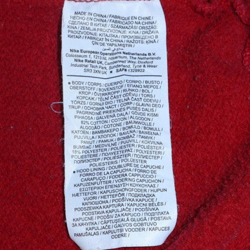This Jordan men's red pullover hoodie delivers a combination of athletic style, comfort, and all-weather wear. Crafted from a soft fleece blend of 78% cotton and 22% polyester, it offers a warm yet breathable feel, perfect for cooler days. Designed with a classic regular fit, it features a crew neckline and long sleeves, finished with ribbed cuffs and hem for a secure, structured look. The front kangaroo pocket provides both convenience and a relaxed streetwear vibe. Displaying the iconic Jumpman logo embroidered on the chest, this hoodie not only reflects Jordan’s championship legacy but also adds a subtle statement of sports-inspired fashion. The deep red colour gives it a bold yet versatile tone, making it easy to pair with joggers, jeans, or athletic wear for casual everyday style. Built from durable material, it retains shape and softness after multiple washes, ensuring long-lasting performance. Ideal for basketball enthusiasts, gym sessions, or laid-back weekends, the hoodie offers dependable warmth during autumn, winter, and spring. Its machine washable design makes care simple, while the lightweight fleece lining ensures comfortable wear without bulk. Whether you’re layering up for outdoor workouts or styling it casually for a relaxed outing, this Jordan hoodie delivers a timeless look with effortless appeal. In excellent pre-owned condition, the garment shows minimal signs of wear and remains clean overall. A great value choice for those seeking authentic Jordan sportswear, this versatile pullover promises comfort, durability, and signature athletic flair — ideal for men who value both performance and style.