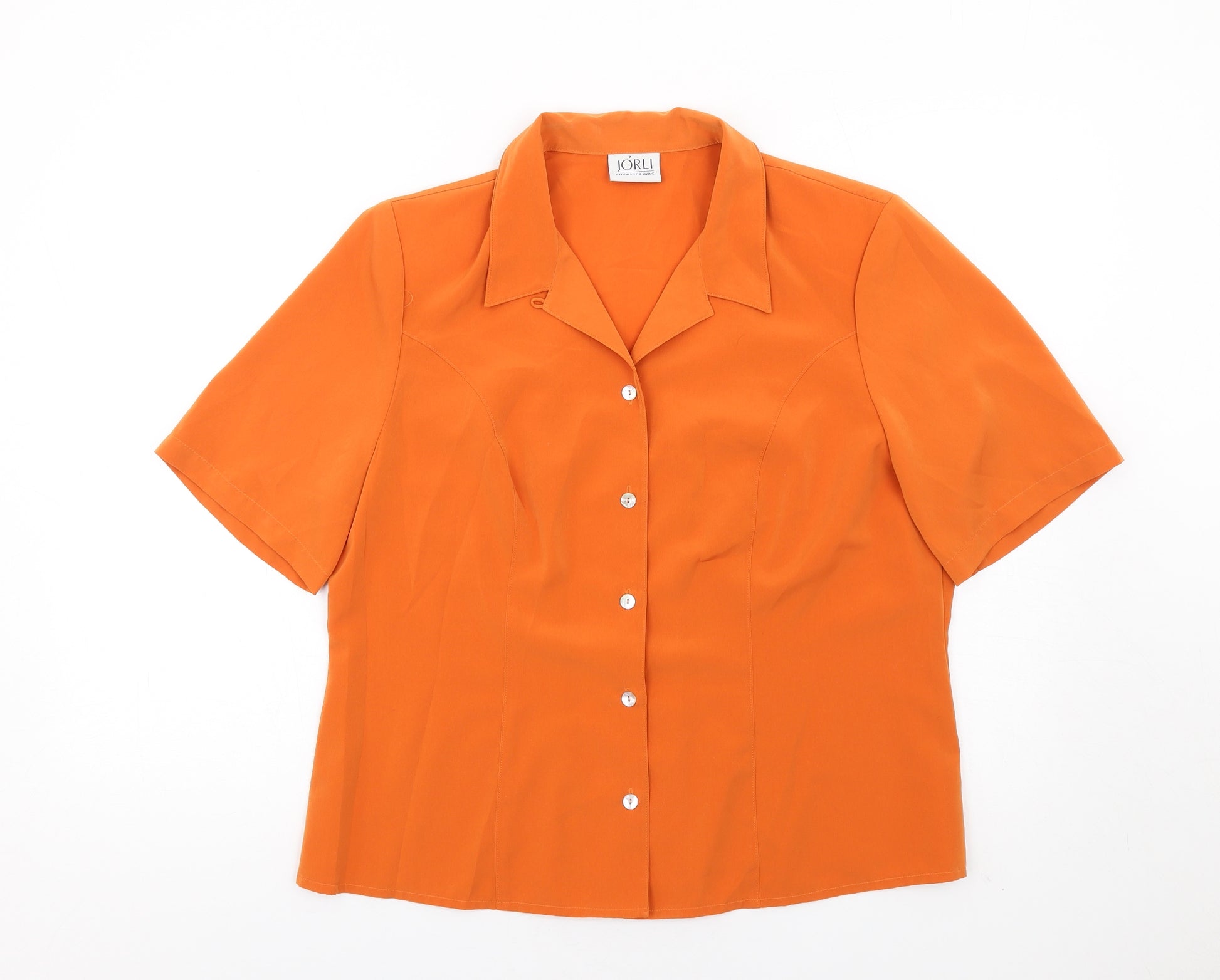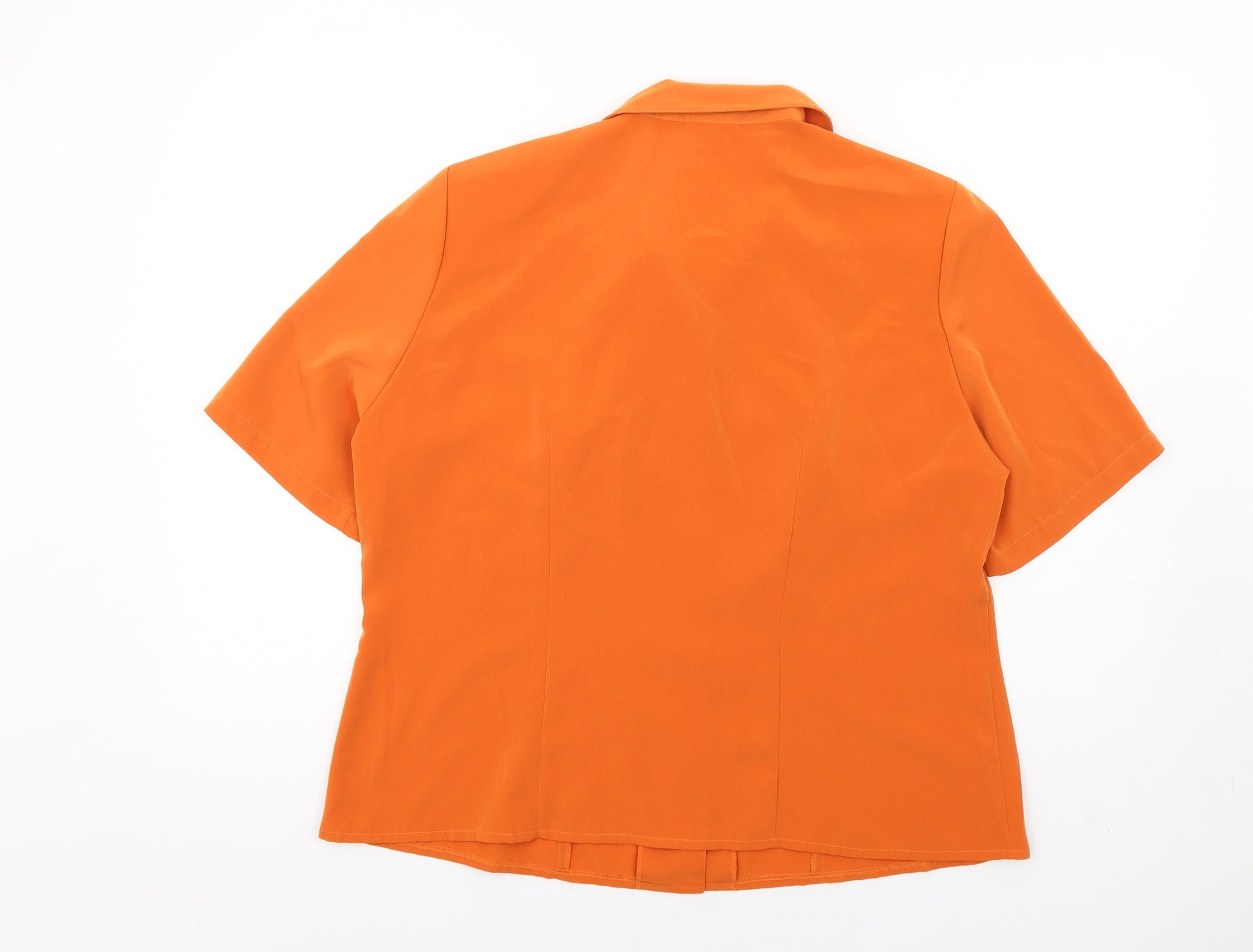 Womens Orange Polyester Basic Button-Up Size 18 Collared