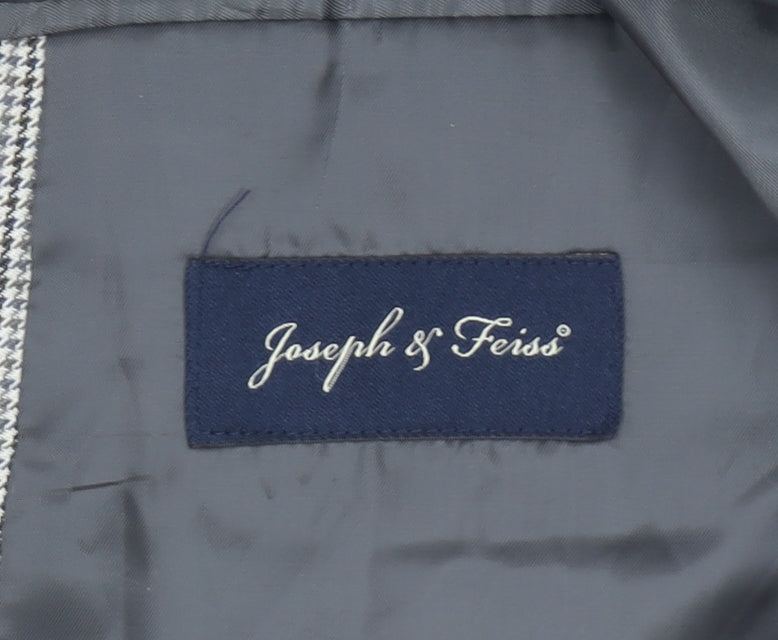 Step out in understated sophistication with this Joseph & Feiss men's grey check blazer, tailored in a classic fit for a timeless silhouette. Crafted from a comfortable and durable blend of 65% polyester and 35% viscose, the jacket offers a smooth texture and excellent drape. The subtle check pattern adds visual interest without being overpowering, making it a versatile addition to any smart wardrobe. Designed in size 40 Short, this blazer provides a balanced and flattering fit, suitable for professional settings, formal occasions, or evening events. Its single-breasted two-button front closure, notch lapels, and double-vented back create a traditional yet polished appearance. Inside, fully lined grey polyester fabric delivers a refined finish with interior pockets for practical storage. This piece embodies understated charm, ideal for elevating both office wear and special occasion outfits. Pair it with tailored trousers and a crisp shirt for a professional ensemble, or dress it down with dark jeans for smart-casual style. The garment has been well maintained and remains in excellent pre-owned condition, showing only minimal creasing consistent with gentle wear. Its breathable fabric composition and dry-clean-only care instructions ensure longevity and easy maintenance for years to come. Perfect for cooler seasons like autumn and winter, this blazer transitions seamlessly from day meetings to evening events. Whether you're dressing for a business function, wedding reception, or stylish dinner, this Joseph & Feiss blazer delivers both comfort and class in equal measure. Add it to your wardrobe and experience the confidence of timeless tailoring.